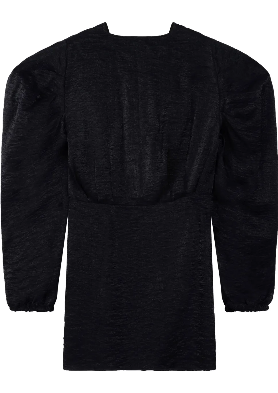 – De jurk is afgewerkt met een subtiel glitter detail en pofmouwen