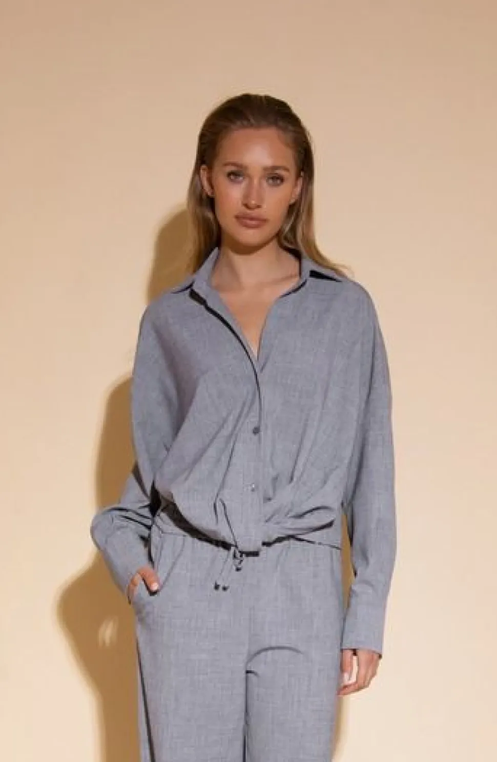 – Het model is 1.76m lang en draagt maat S