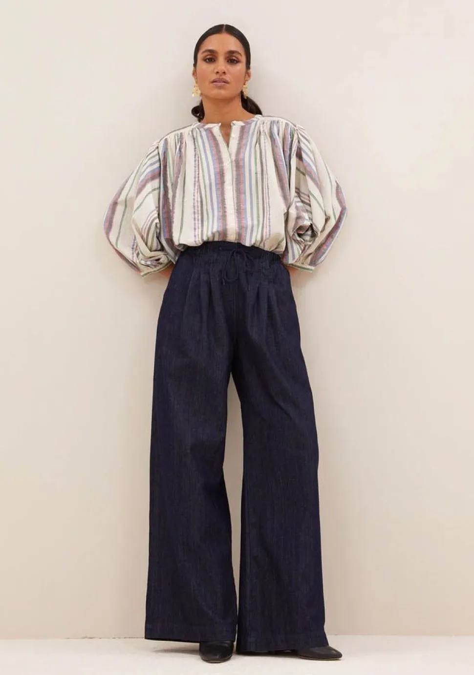 – Beckey colored blouse voorzien van een glitter detail. De blouse is afgewerkt met ballon mouwen