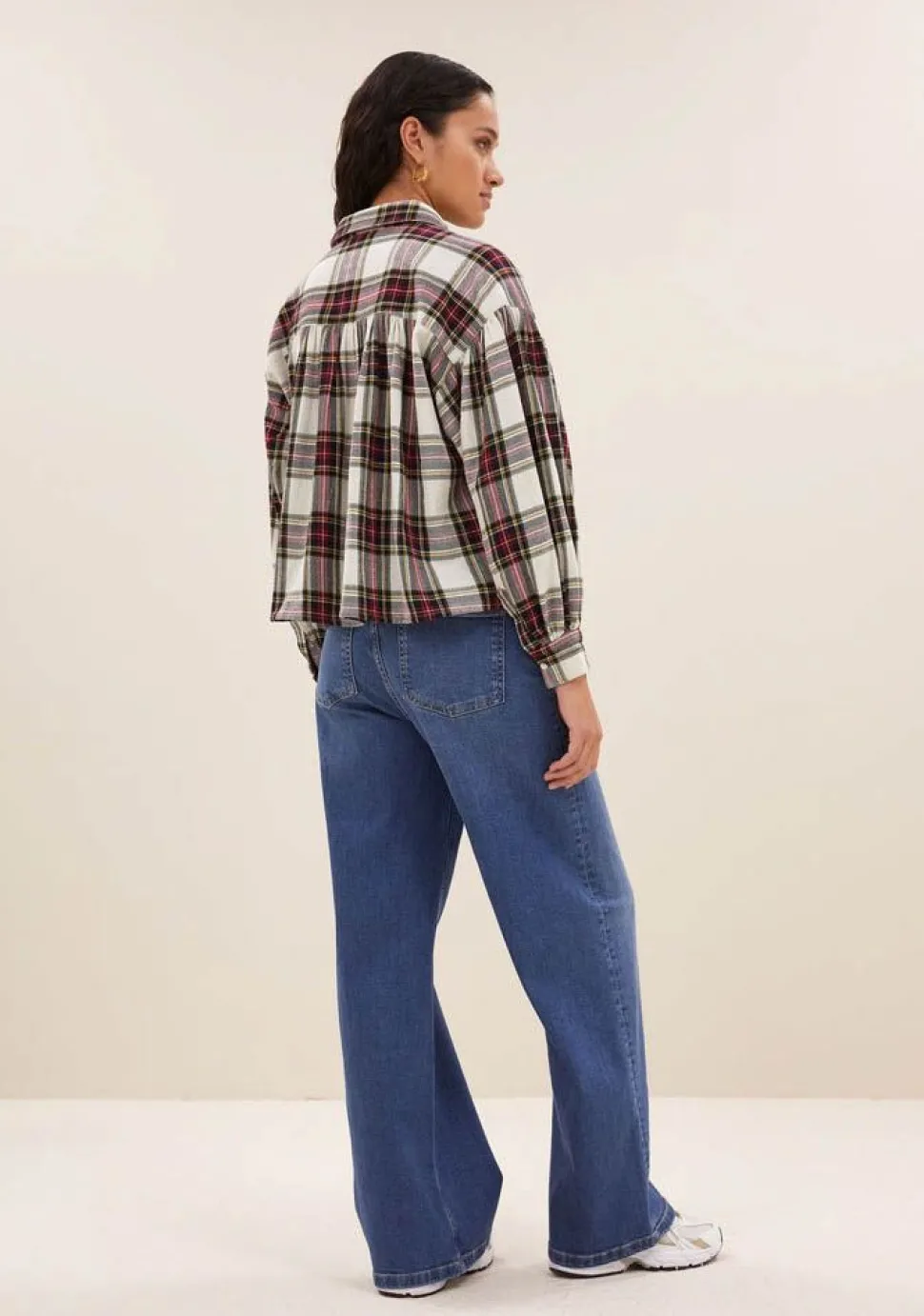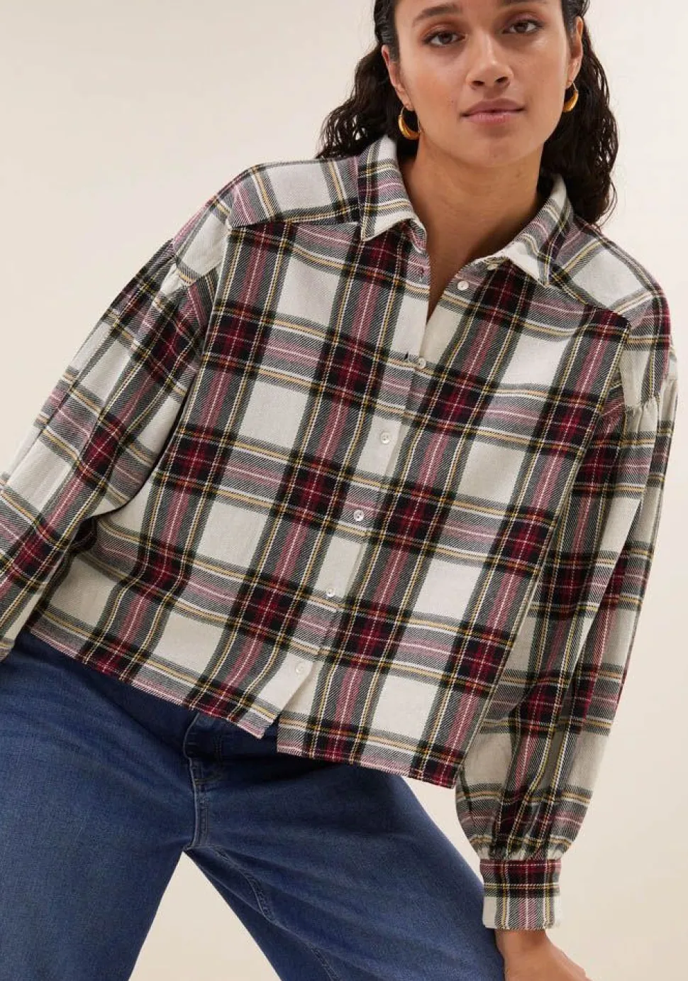 – Sarah short check blouse voorzien van split accenten in de zijnaden