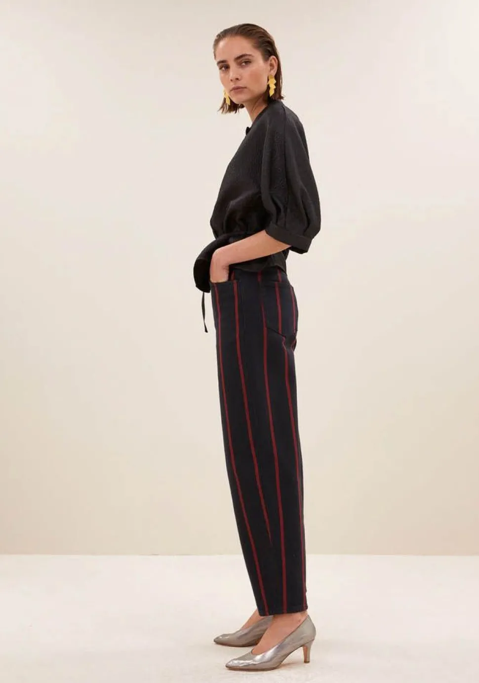 – Het model is 1.78m lang en draagt maat S