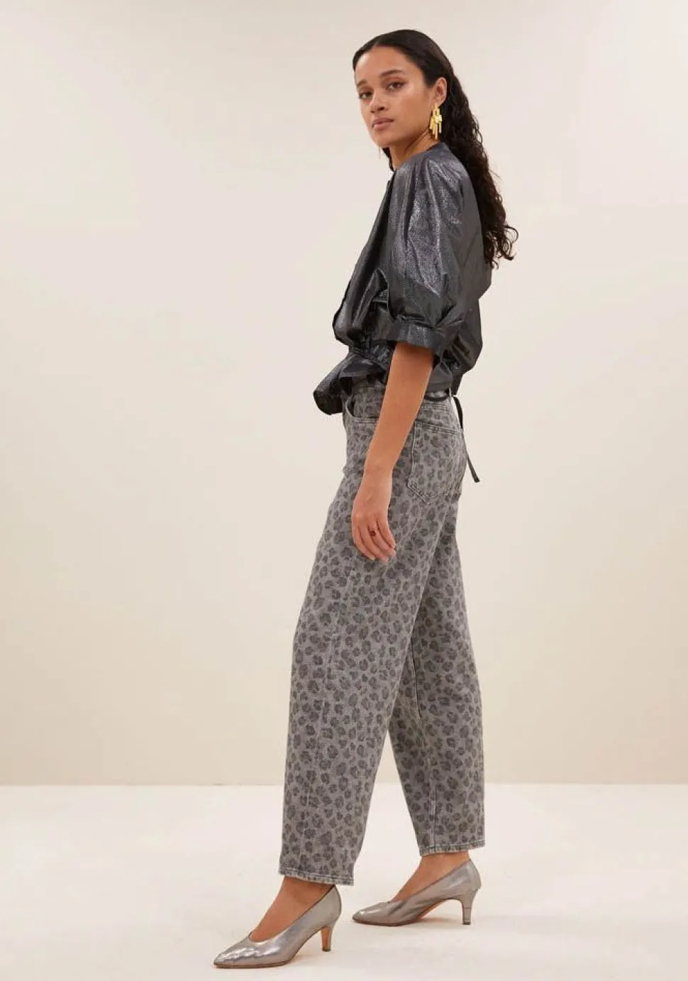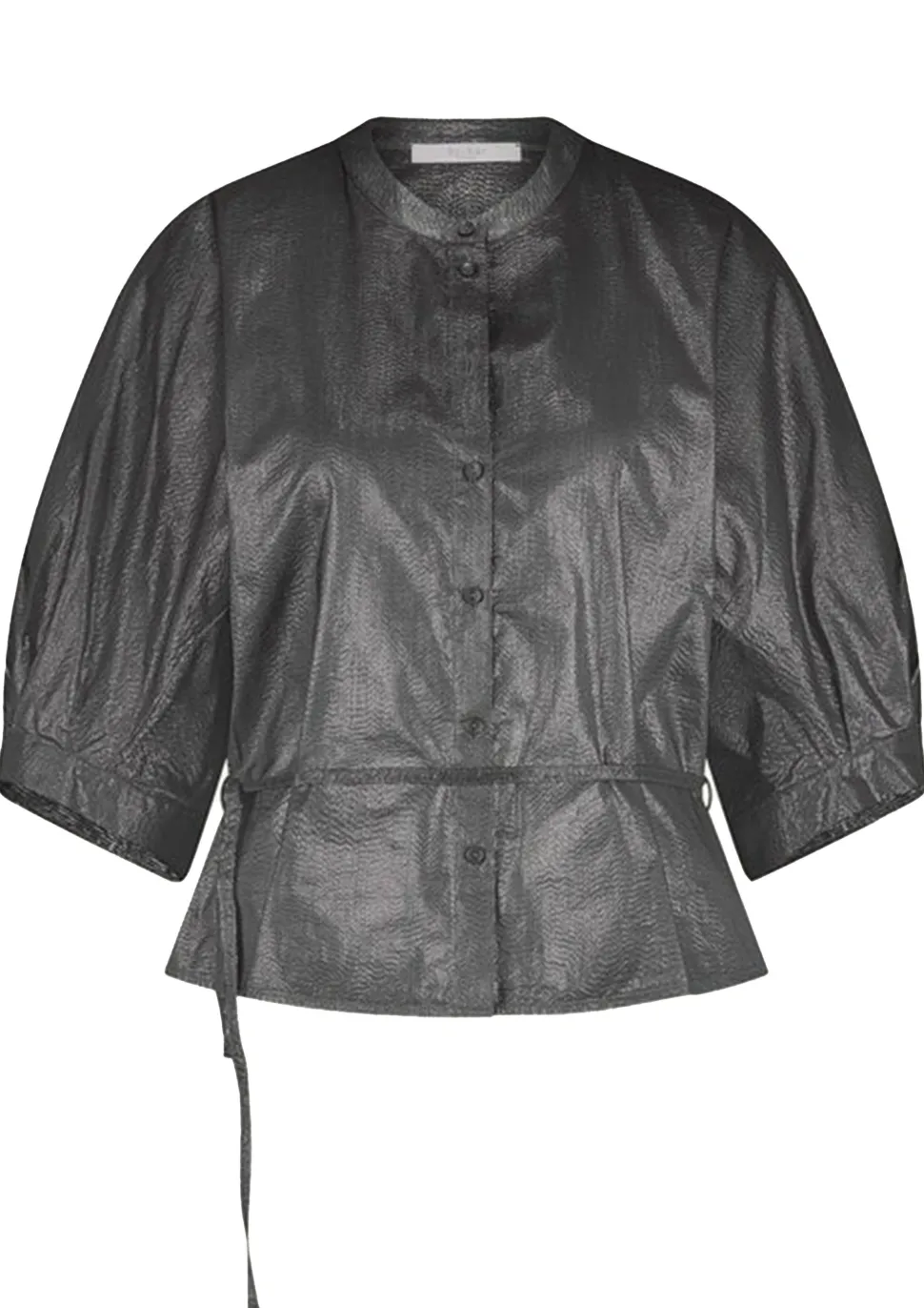 – Christi silver blouse met ballon mouwen en een ceintuur in de taille
