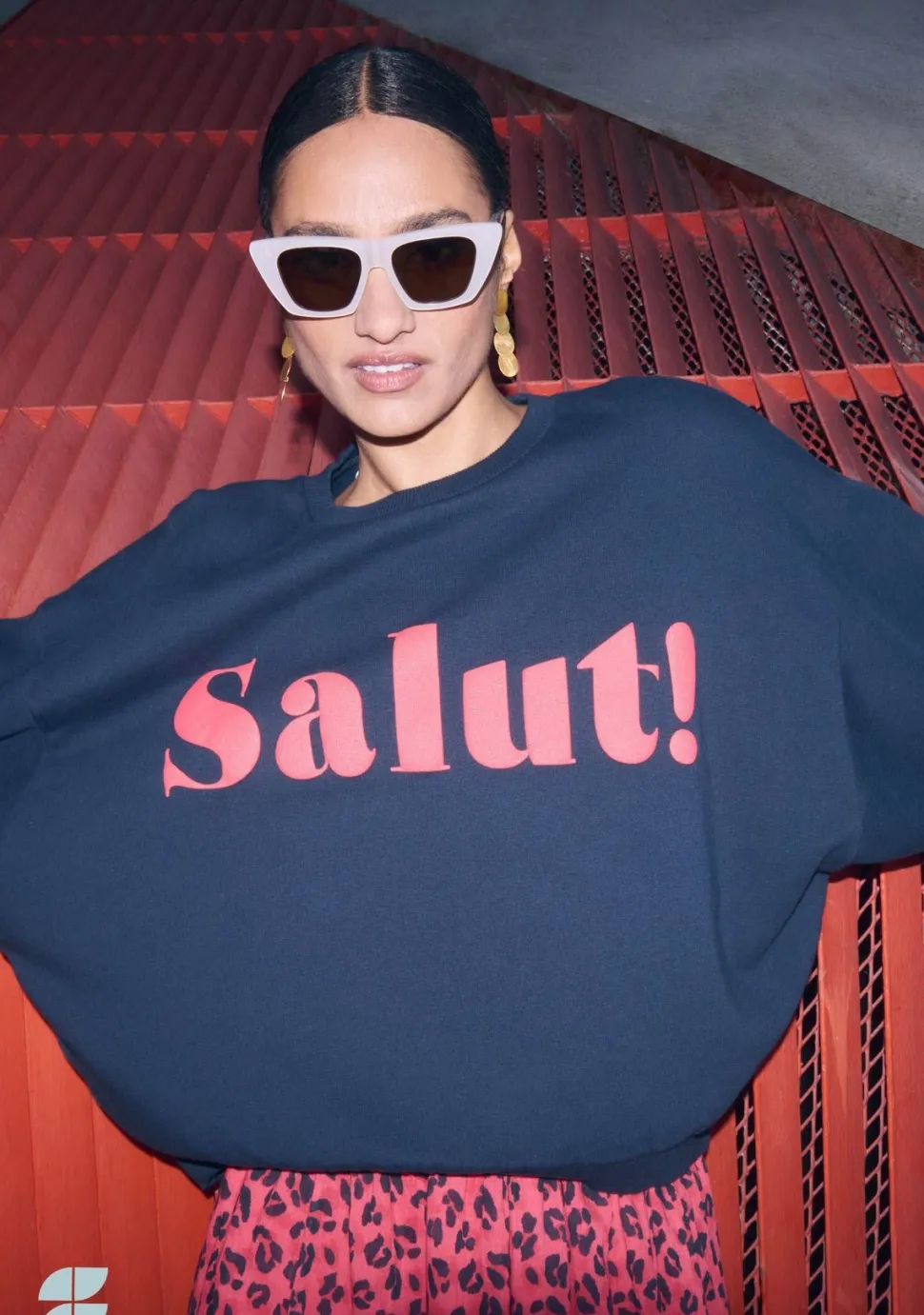 – Bibi salut sweater met grafische opdruk. De sweater heeft een oversized fit.