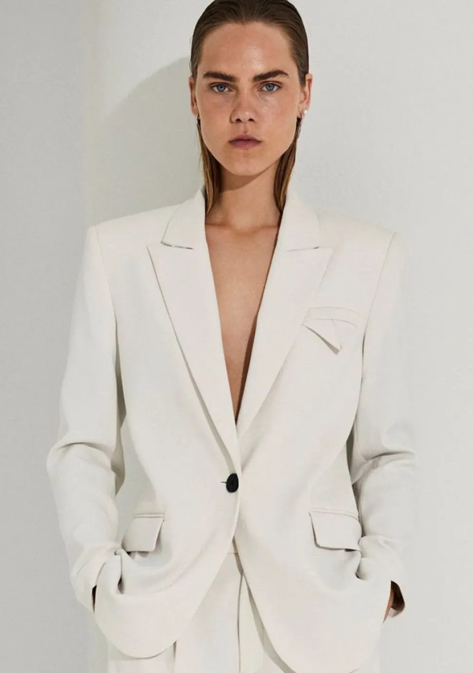 | Stofsamenstelling | 64% Polyester / 34% Viscose / 2% Elastaan / 98% Voering Polyester / 2% Voering Elastaan |