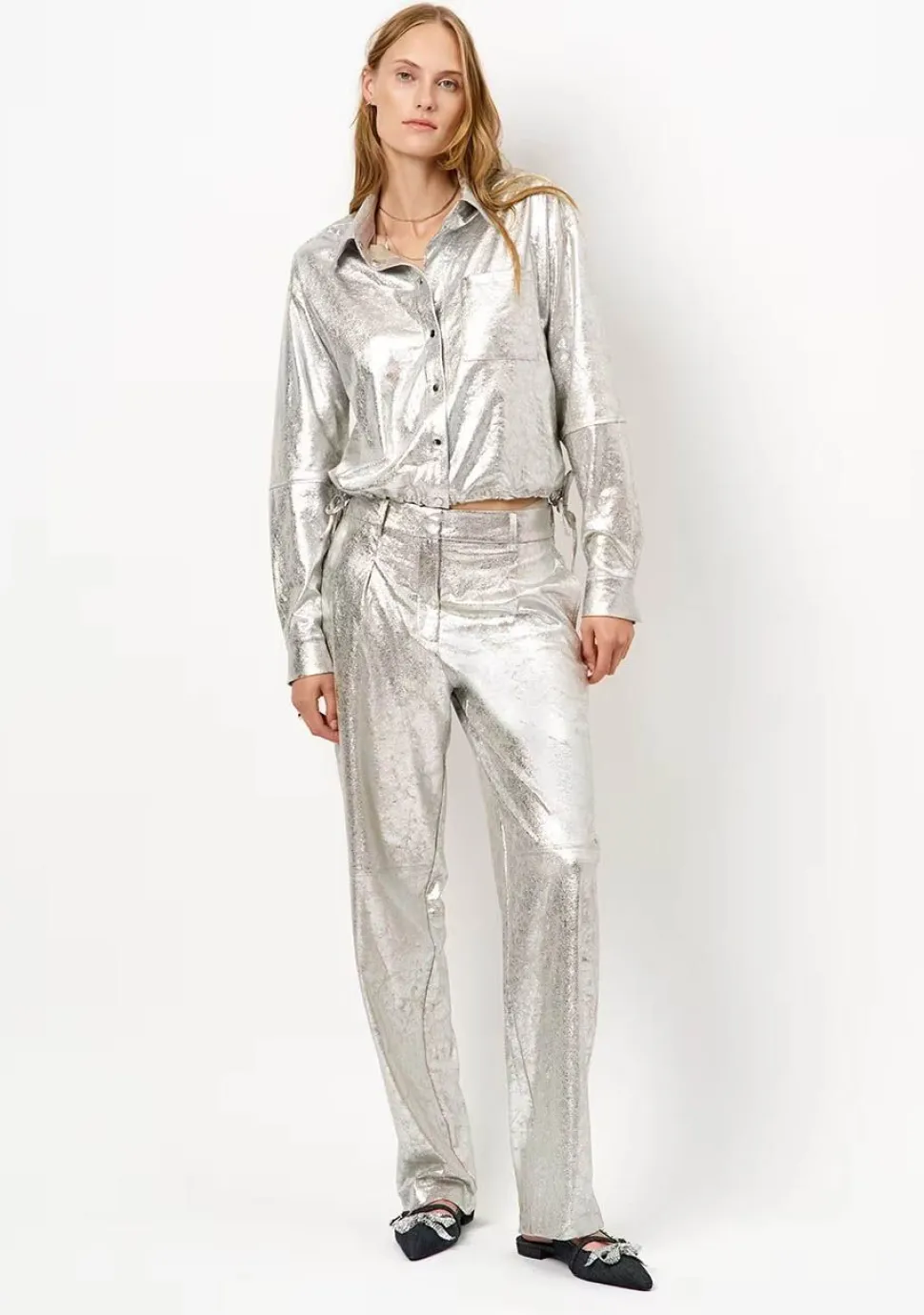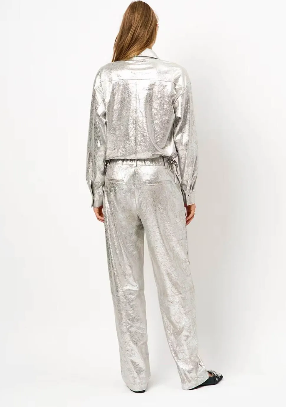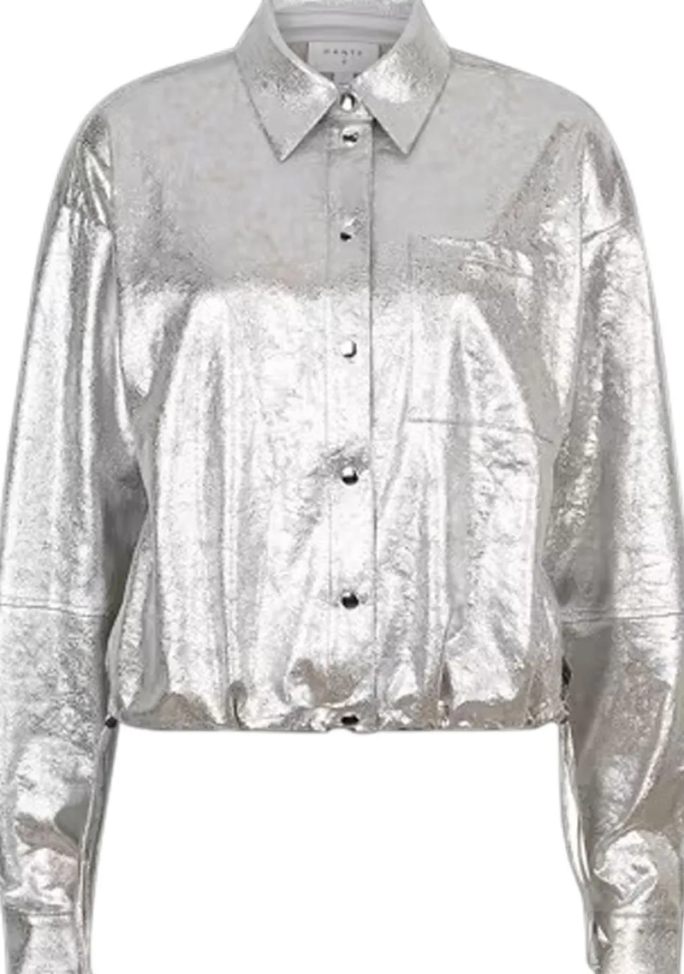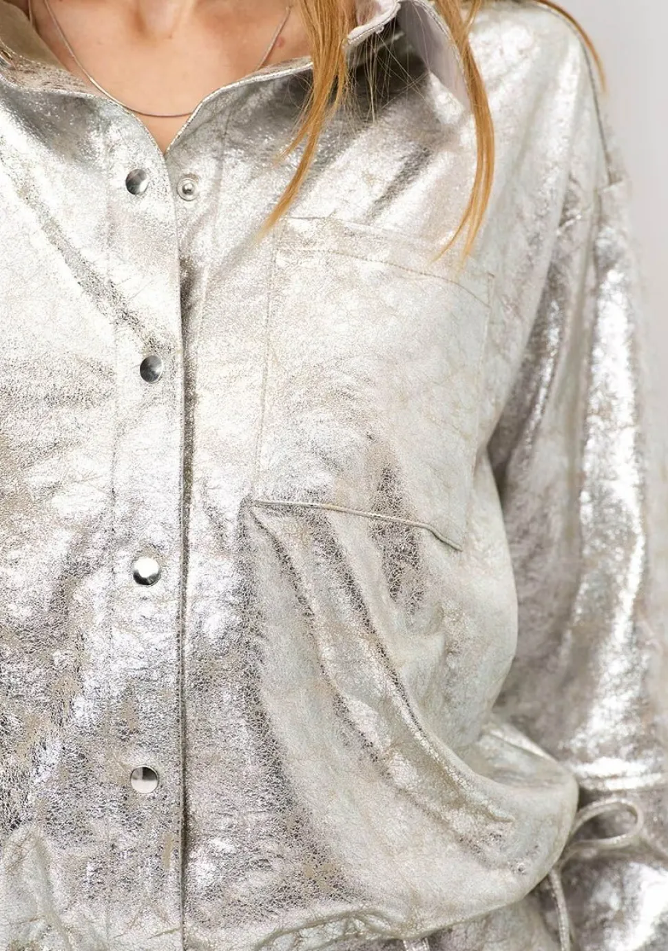 – Nikta metallic faux leather jacket is afgewerkt met een glanzende stof