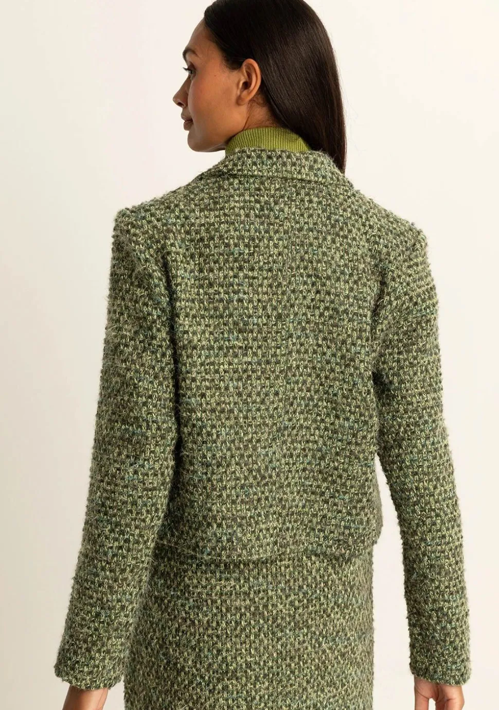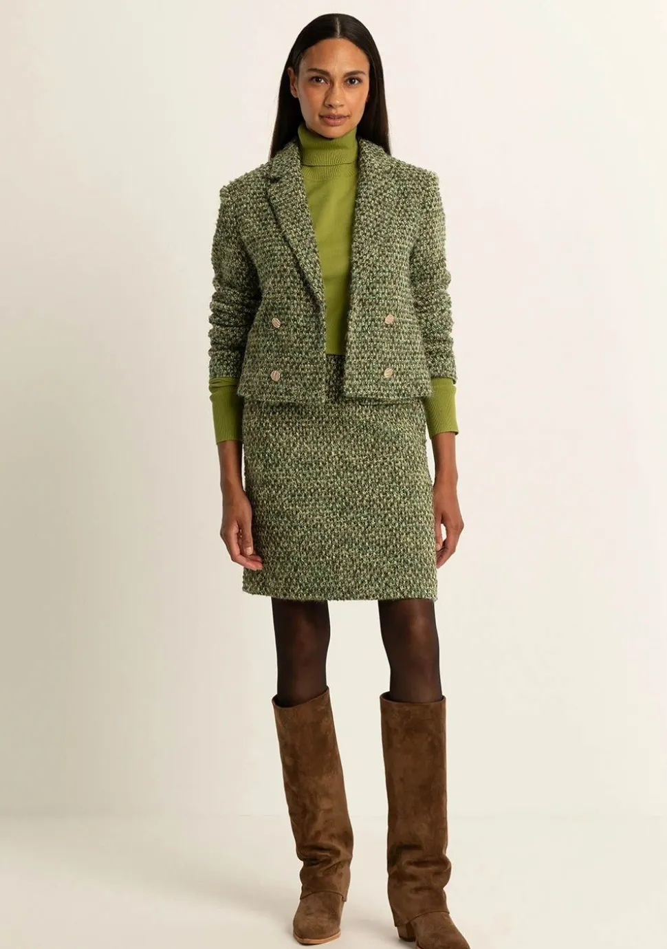 – Het model is 1.76m lang en draagt maat 36