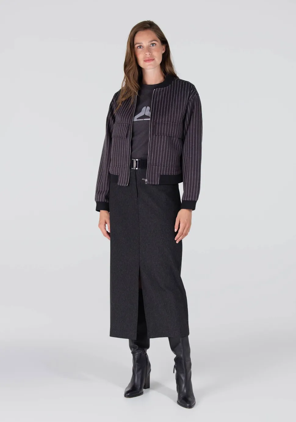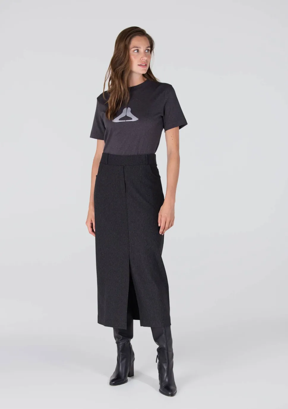 – Het model is 1.78m lang en draagt maat S