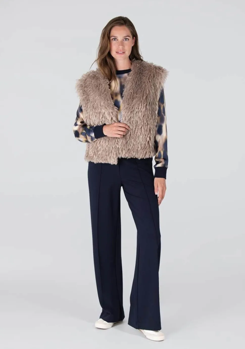 – Het model is 1.78m lang en draagt maat 36