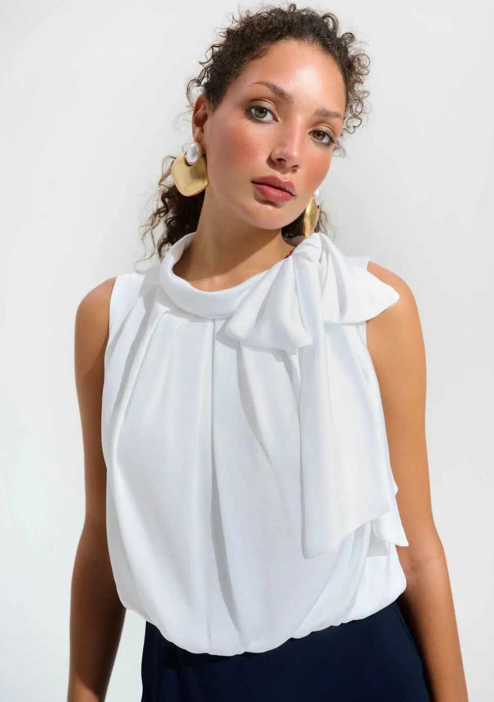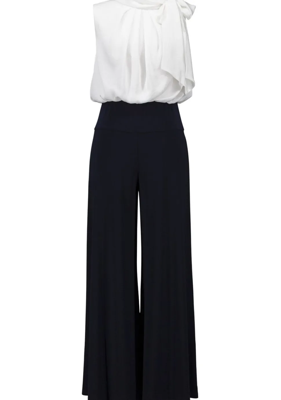 – De jumpsuit is afgewerkt met een strik detail bij de hals