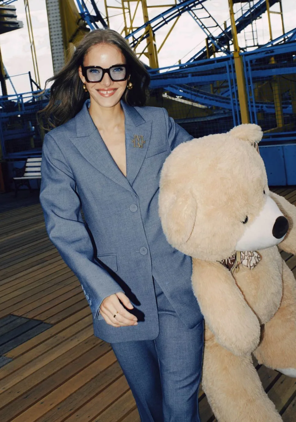 – Het model is 1.76m lang en draagt maat S
