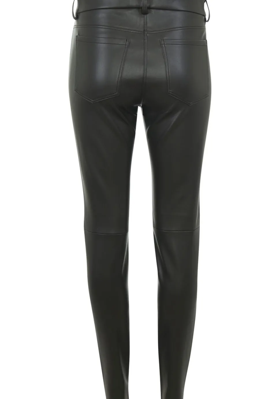– Vegan leather pantalon voorzien van steekzakken en riemlussen