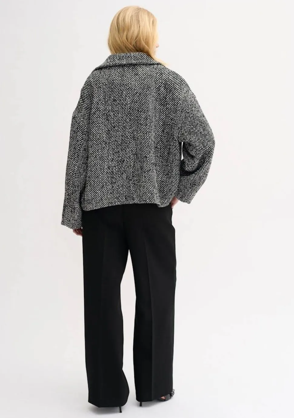 – Het model is 1.77m lang en draagt maat 36