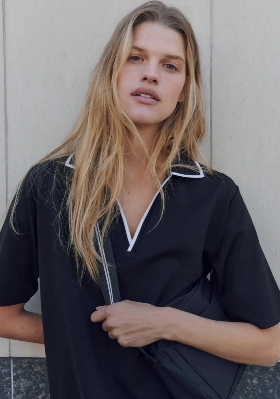 – Het model is 1.75m lang en draagt maat 36
