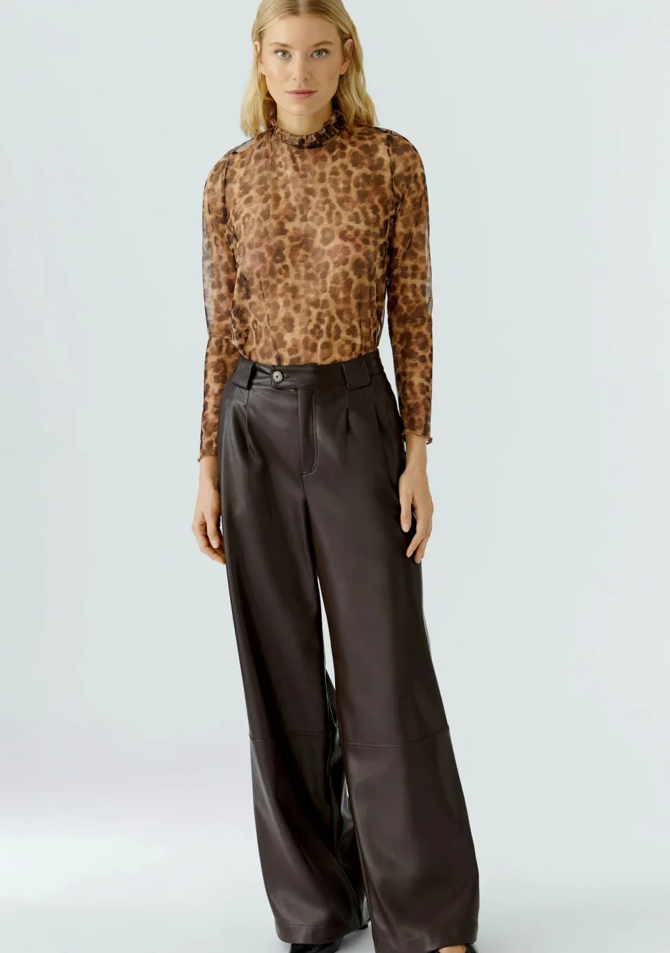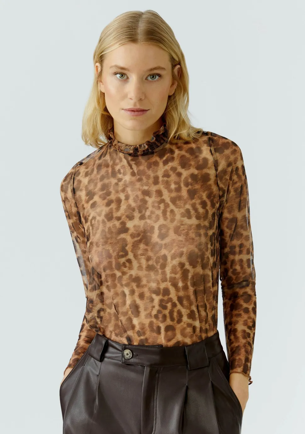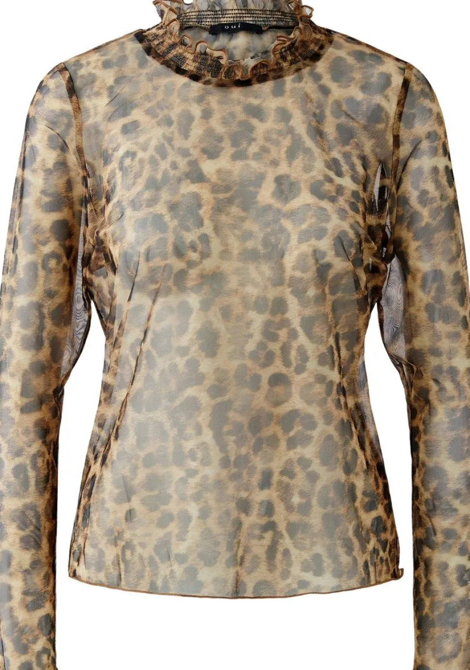 – Doorschijnende mesh top afgewerkt met een ruffle detail bij de hals