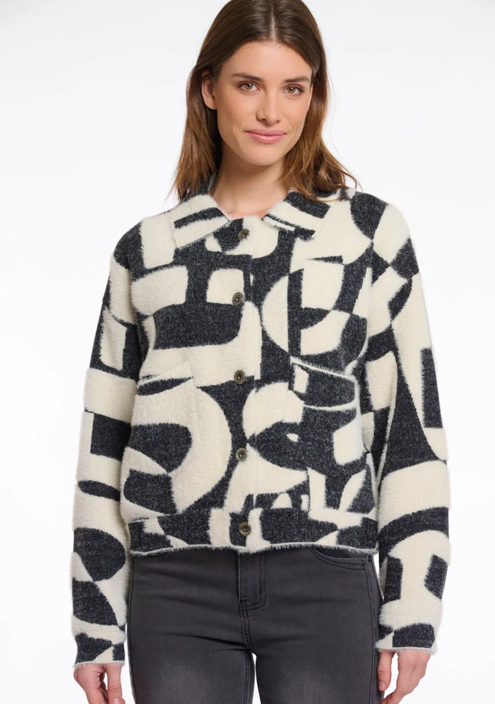 – Zacht gebreide jack is afgewerkt met opgestikte zakken en een decoratieve knoopsluiting aan de achterzijde