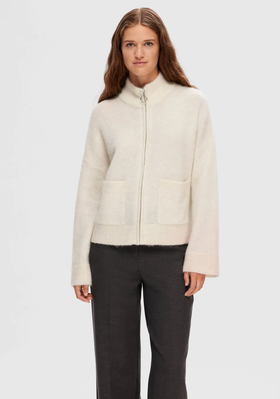 – Het model is 1.76m lang en draagt maat S