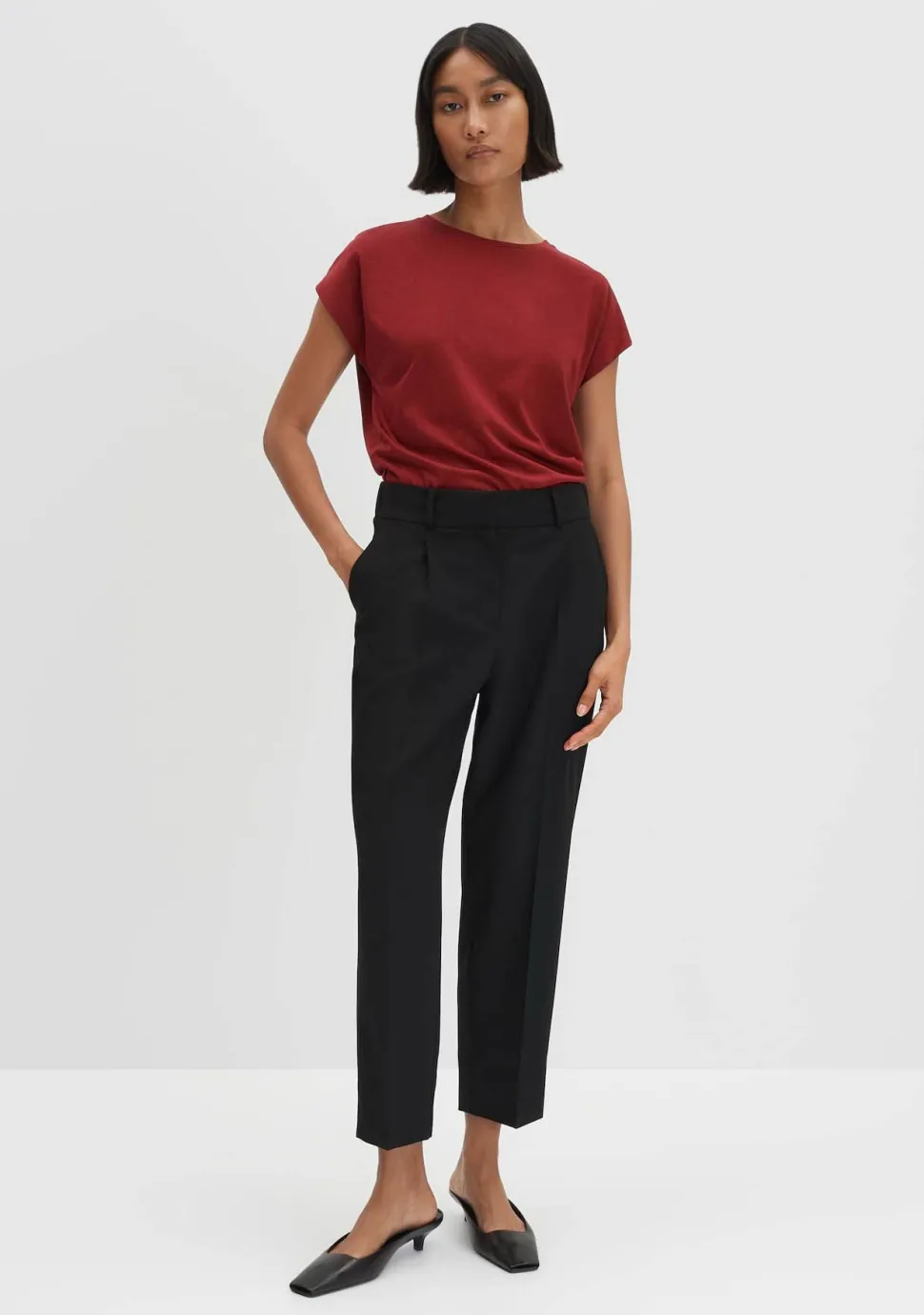– Het model is 1.76m lang en draagt maat 36