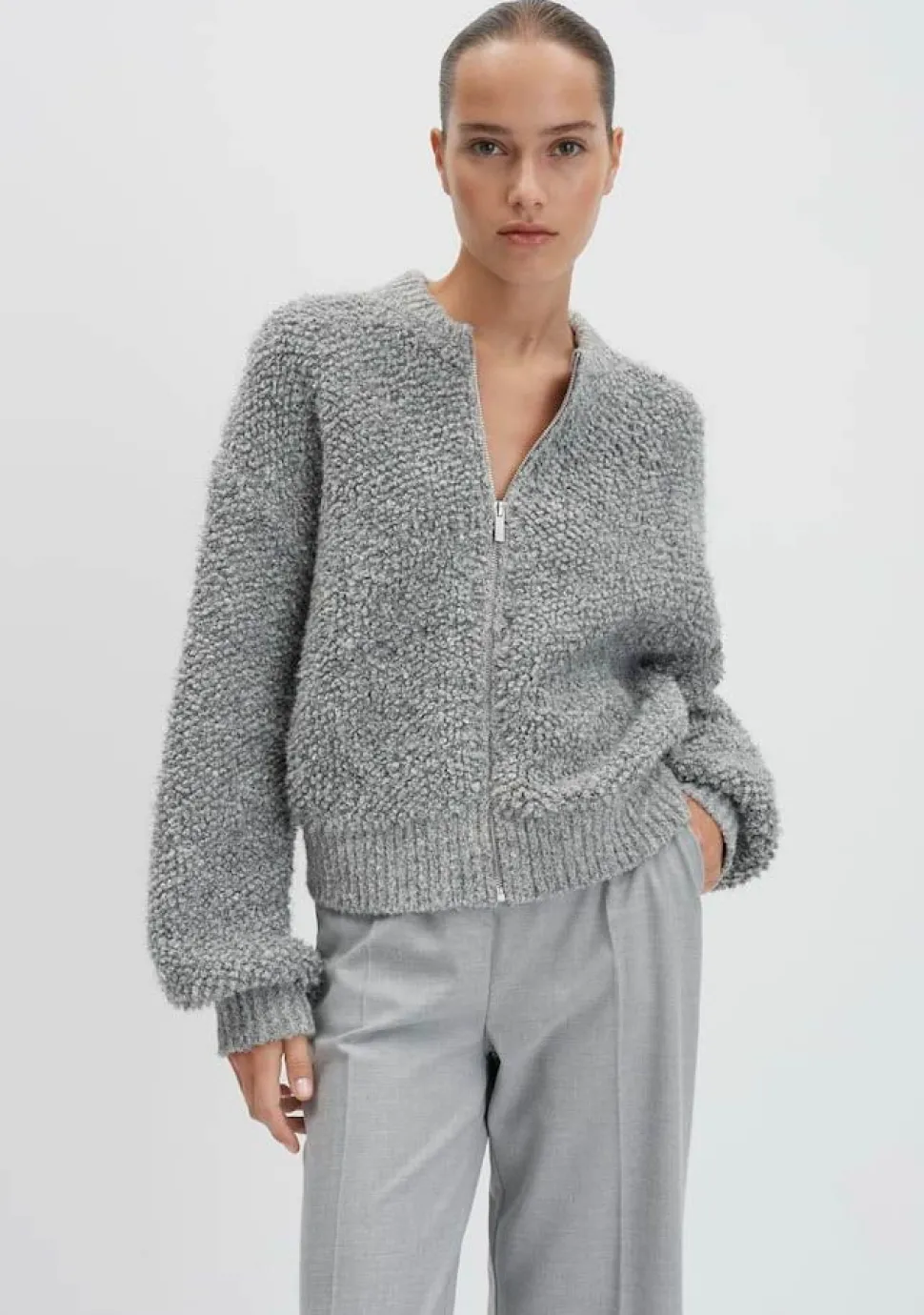 – Het model is 1.76m lang en draagt maat 36