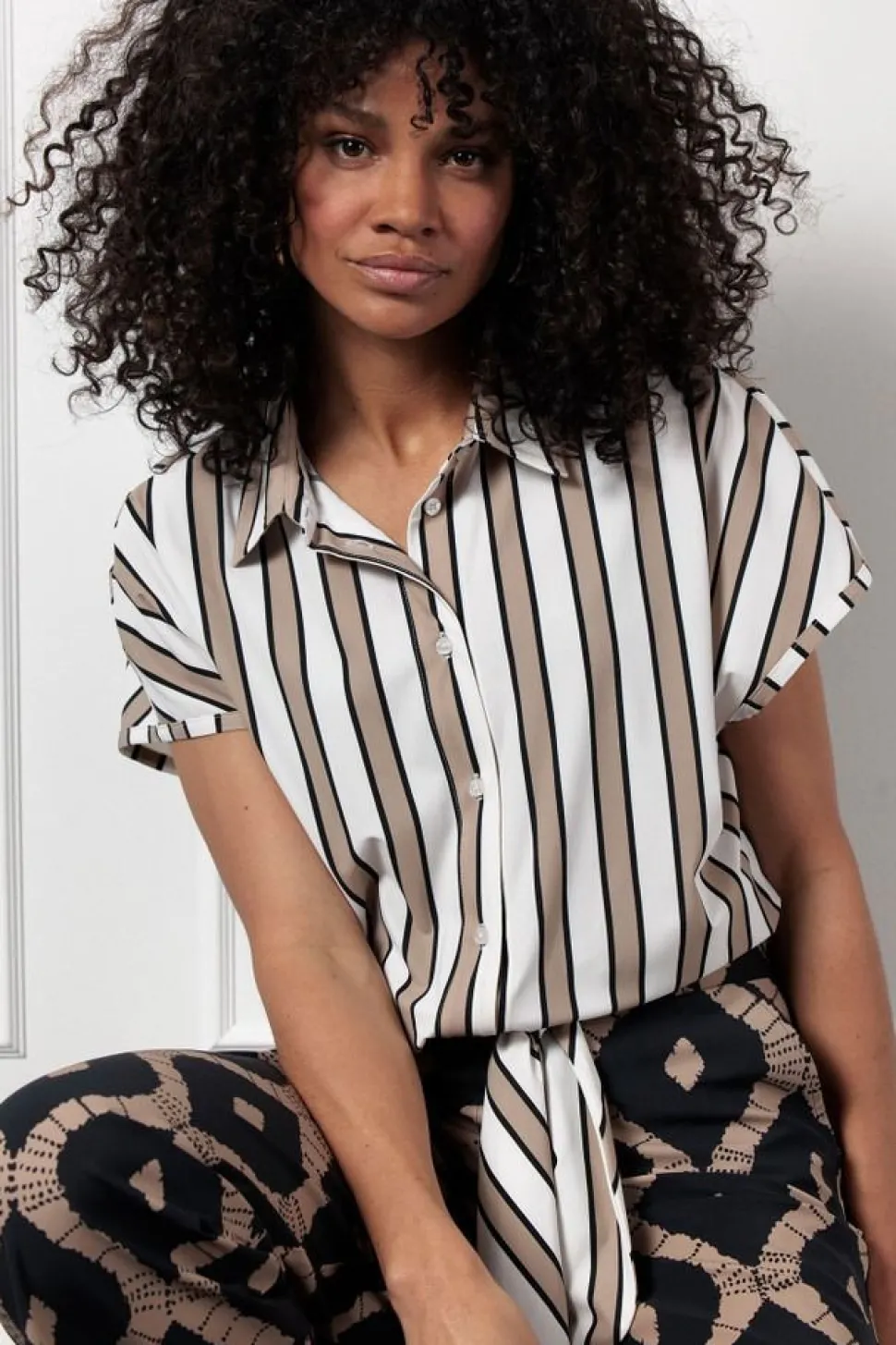 – Lena stripe blouse met aangeknipte mouwen en een smock detail aan de achterzijde. De blouse is gemaakt van travel light kwaliteit.