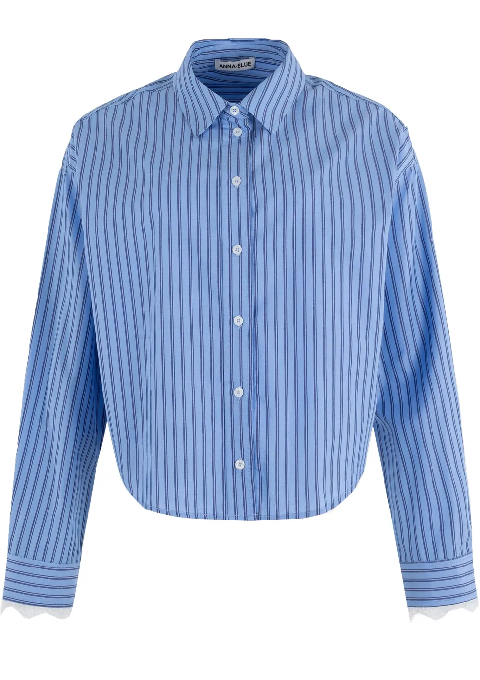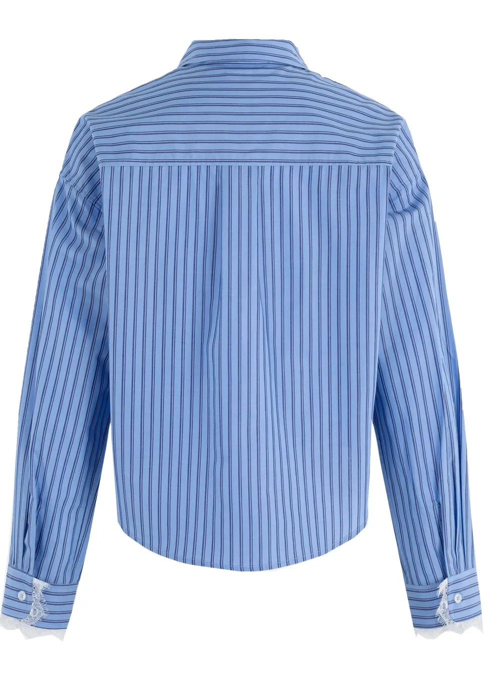 – Gestreepte blouse afgewerkt met kant bij de mouwen