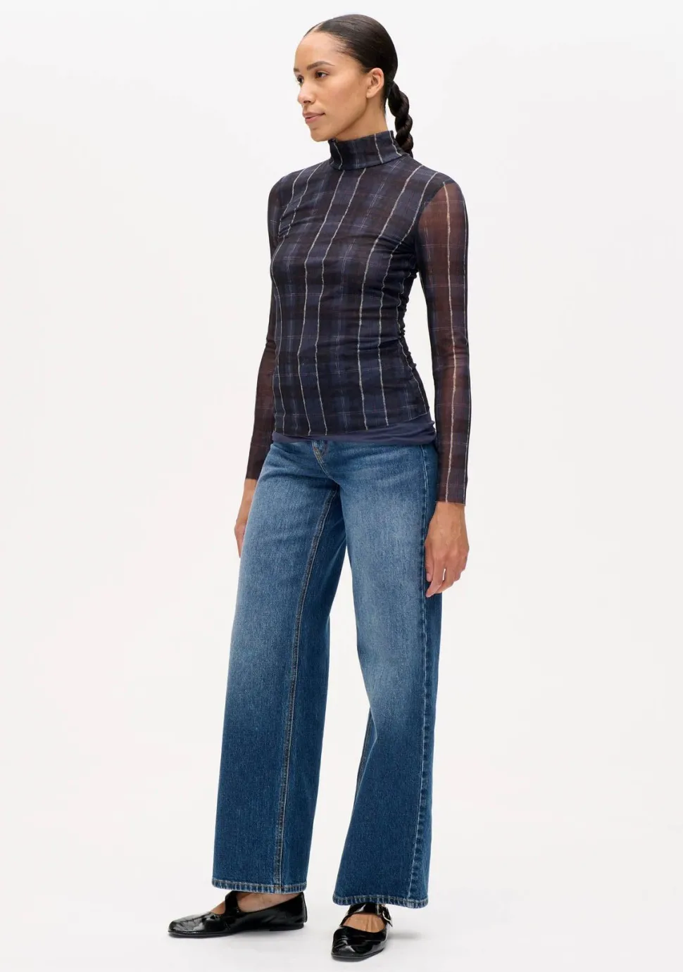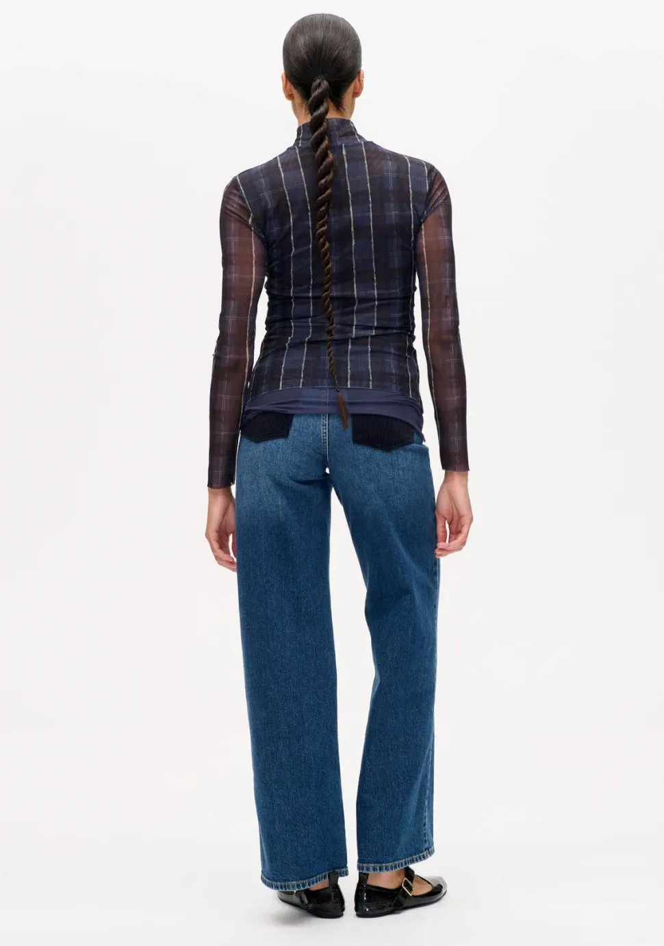 – Het model is 1.77m lang en draagt maat 36