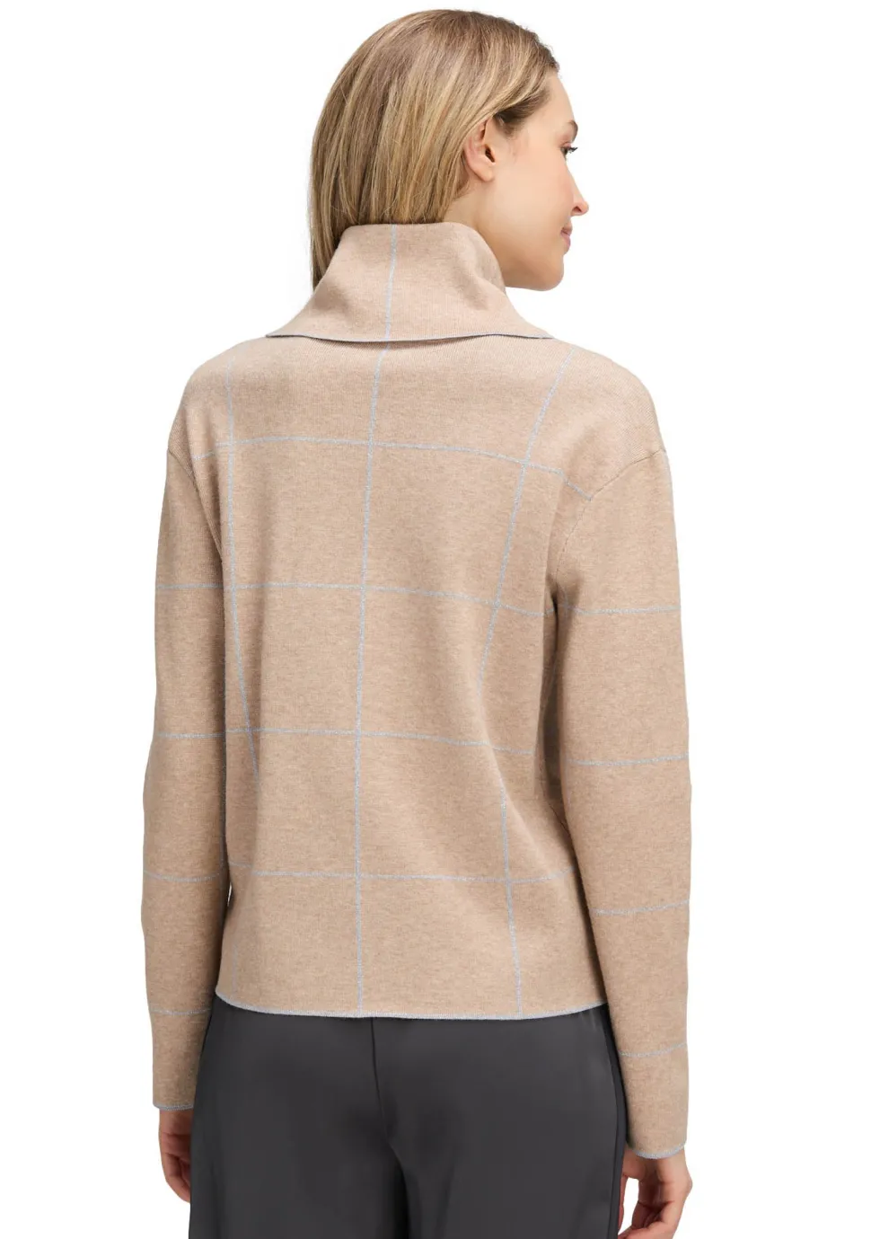 – Het model is 1.76m lang en draagt maat 38