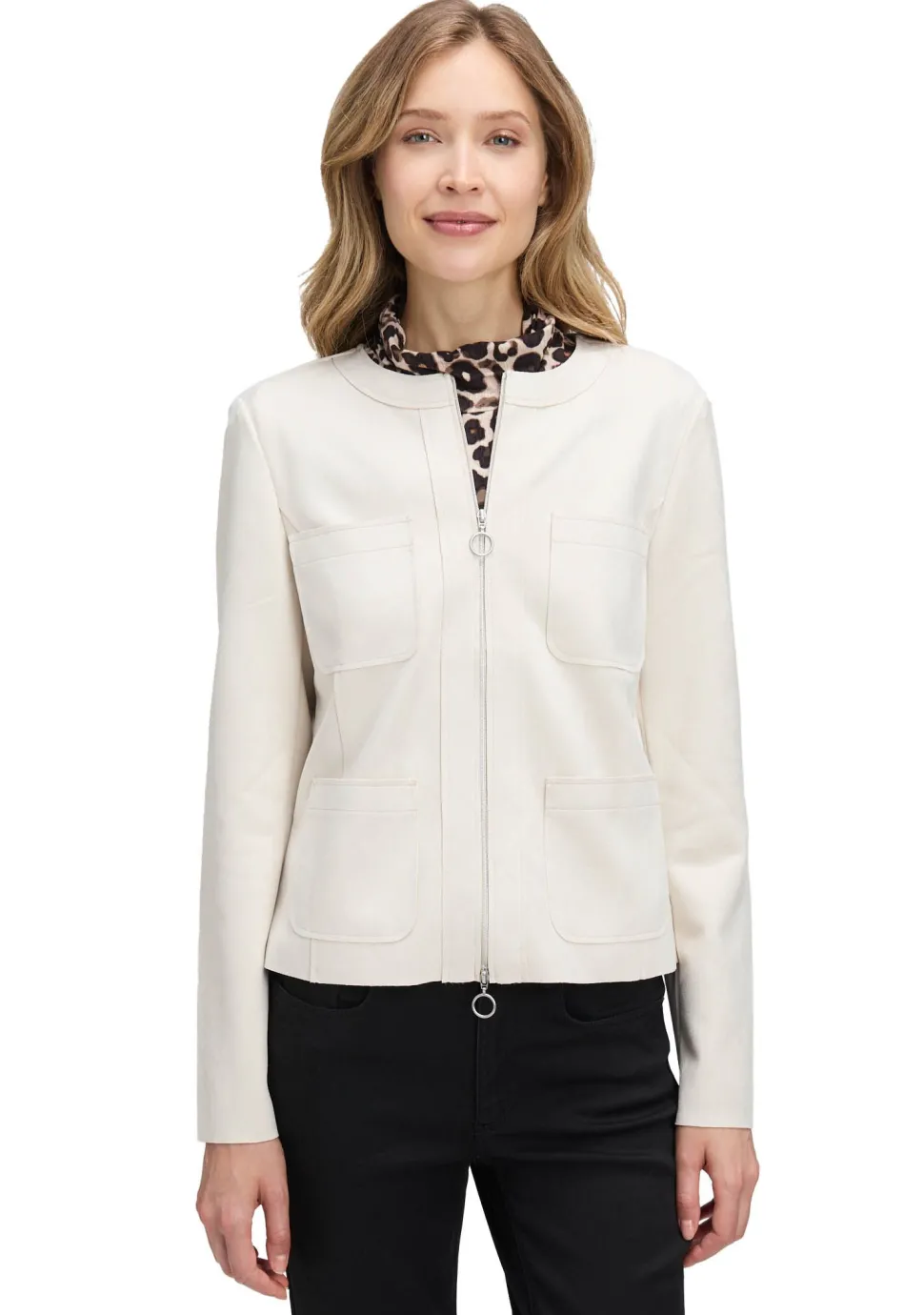 – Het model is 1.76m lang en draagt maat 38