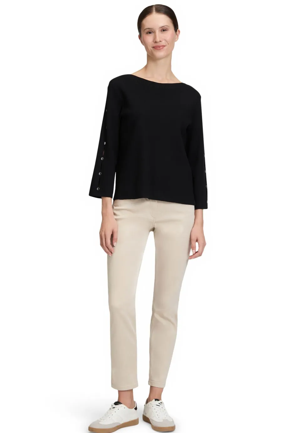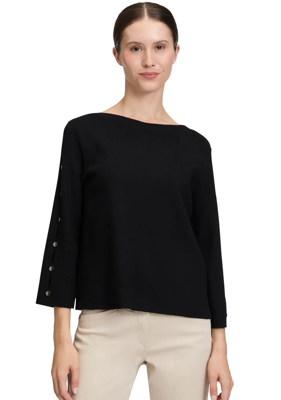 – Pullover afgewerkt met een open gewerkt detail bij de mouwen