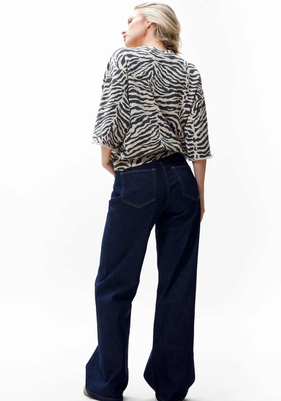 – Het model is 1.76m lang en draagt maat 36