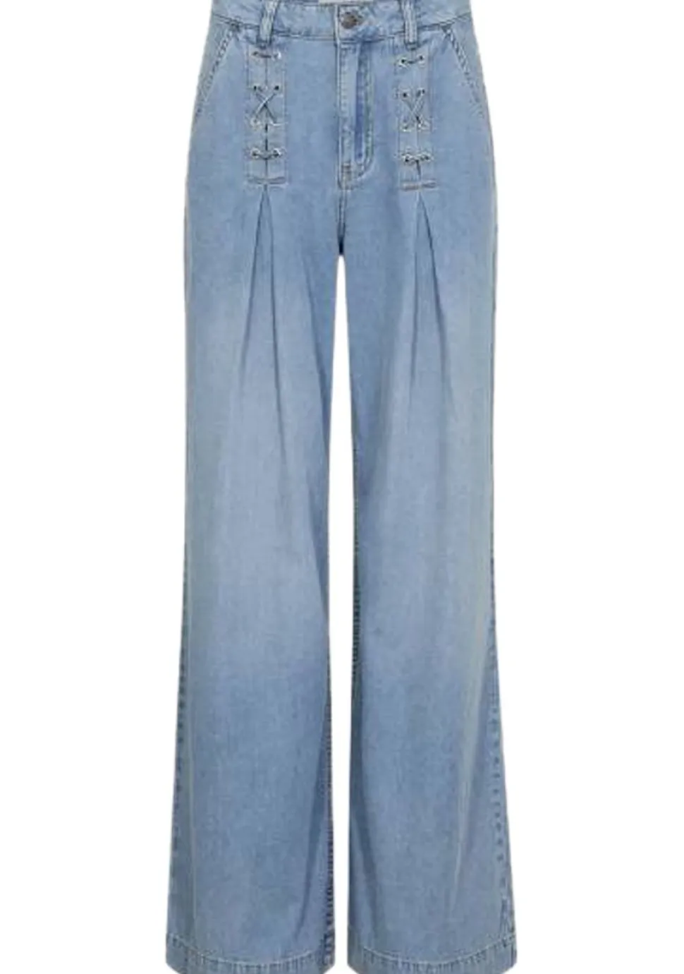 – Wide leg jeans voorzien van steekzakken en riemlussen. De voorzijde is afgewerkt met een speels veter detail.