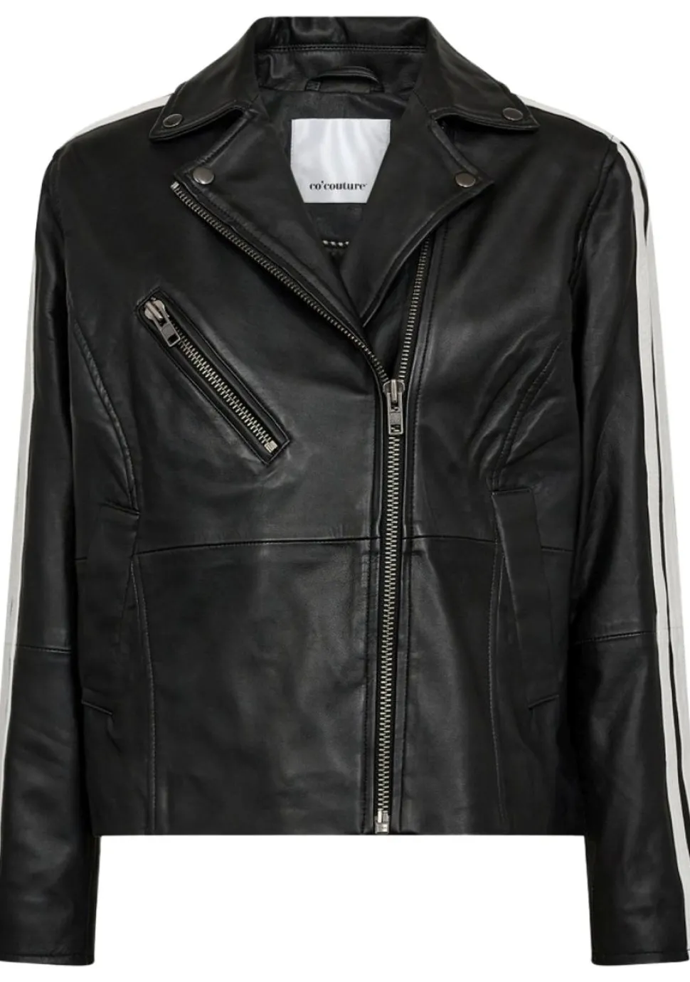 – Phoebe leather jacket is voorzien van een ritssluiting en afgewerkt met steekzakken. Door de zijstreep krijgt het jack een sportieve biker jack look