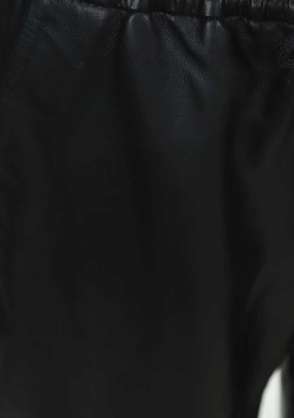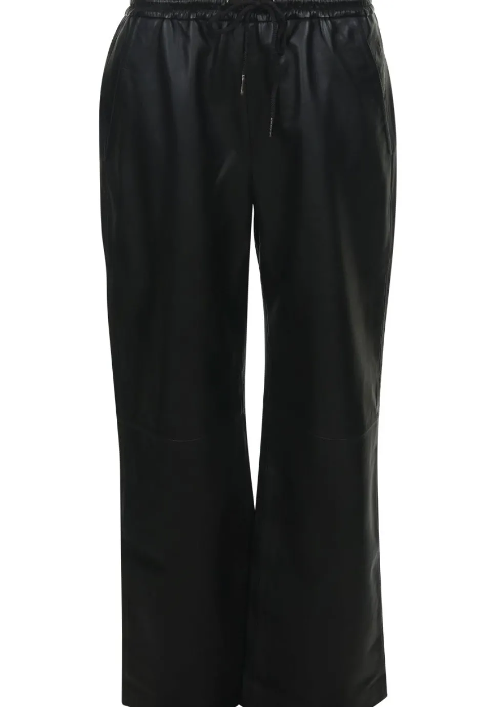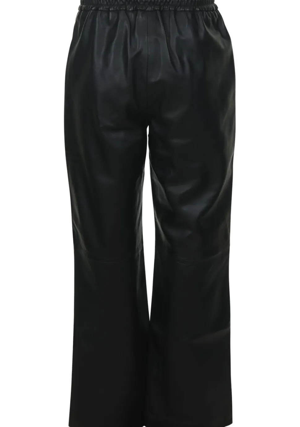 – Leather pant voorzien van steekzakken en een elastische taille band. De pantalon is half gevoerd.