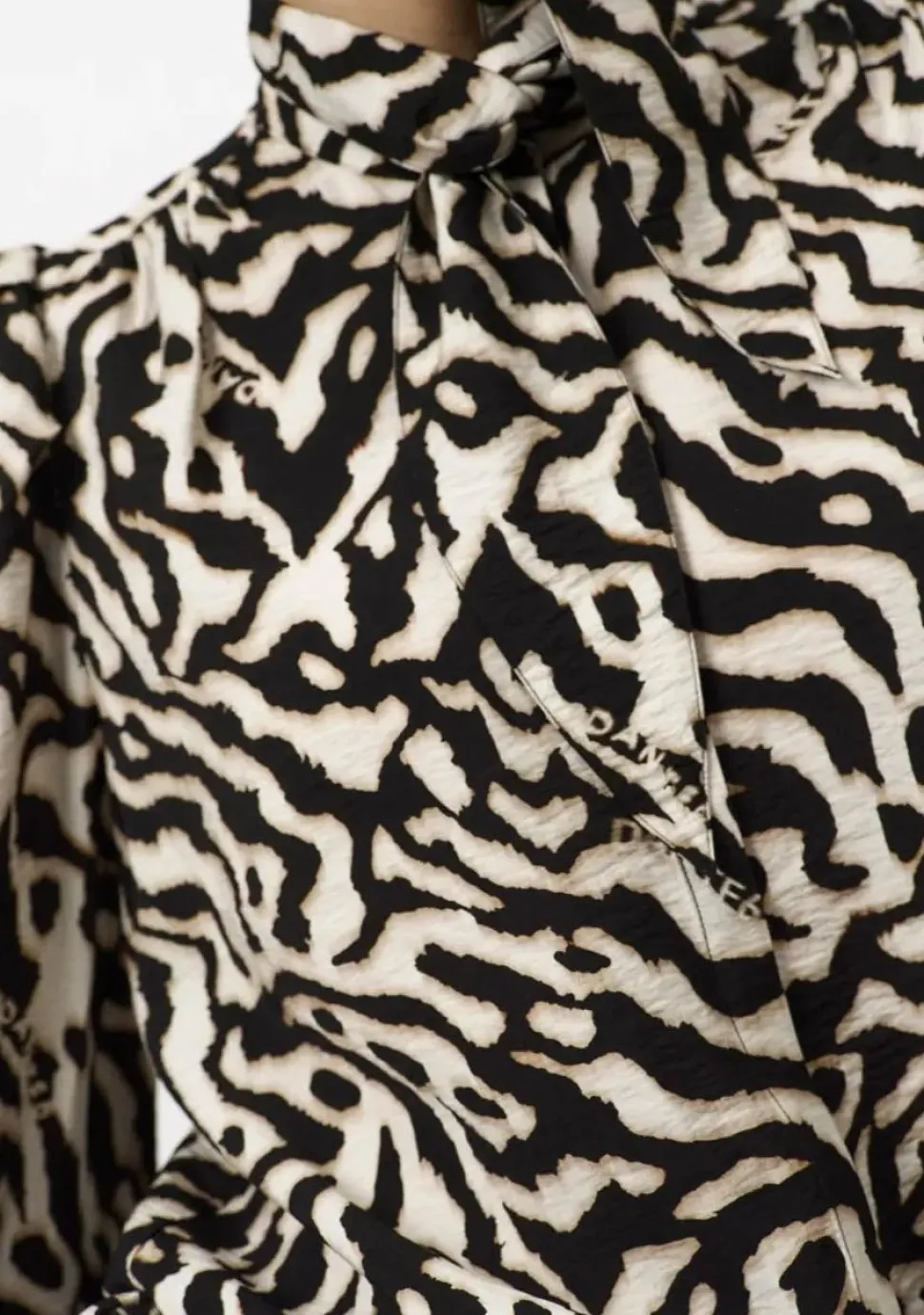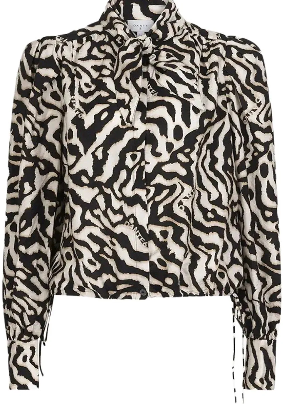 – Blouse voorzien van ballon mouwen en ene strik detail bij de hals