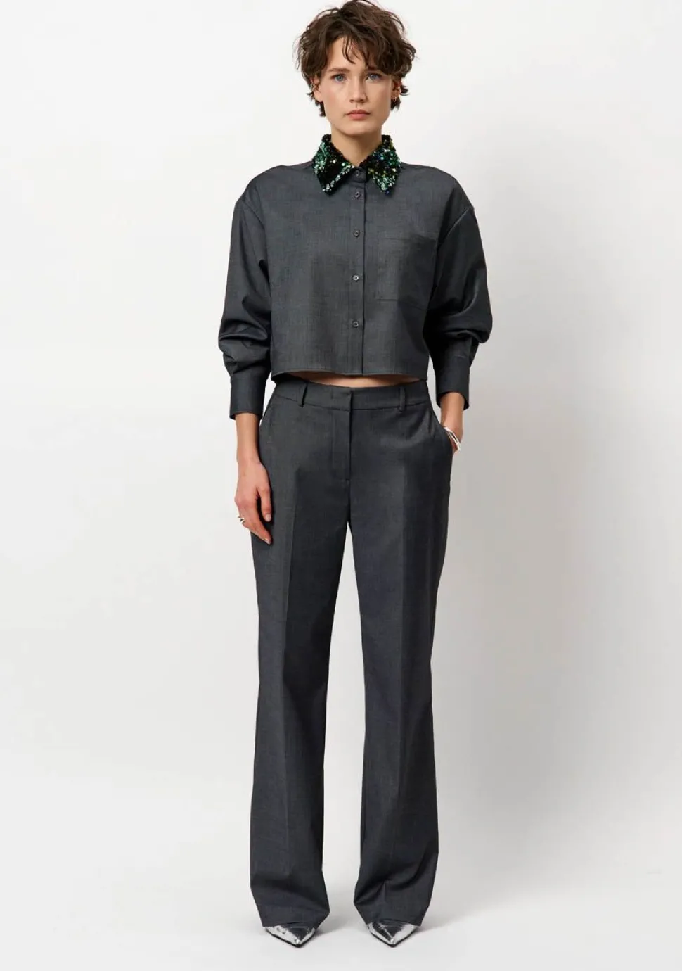 – Blouse afgewerkt met een pailletten detail bij de kraag