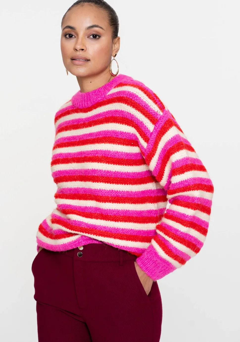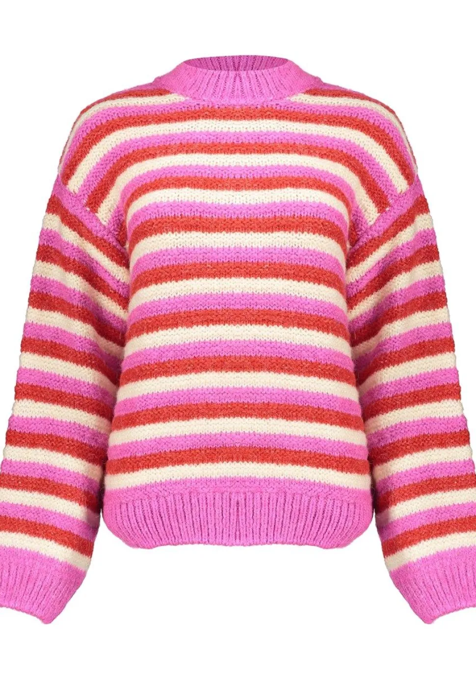 – Pullover loose knit stripes is voorzien van een ronde hals