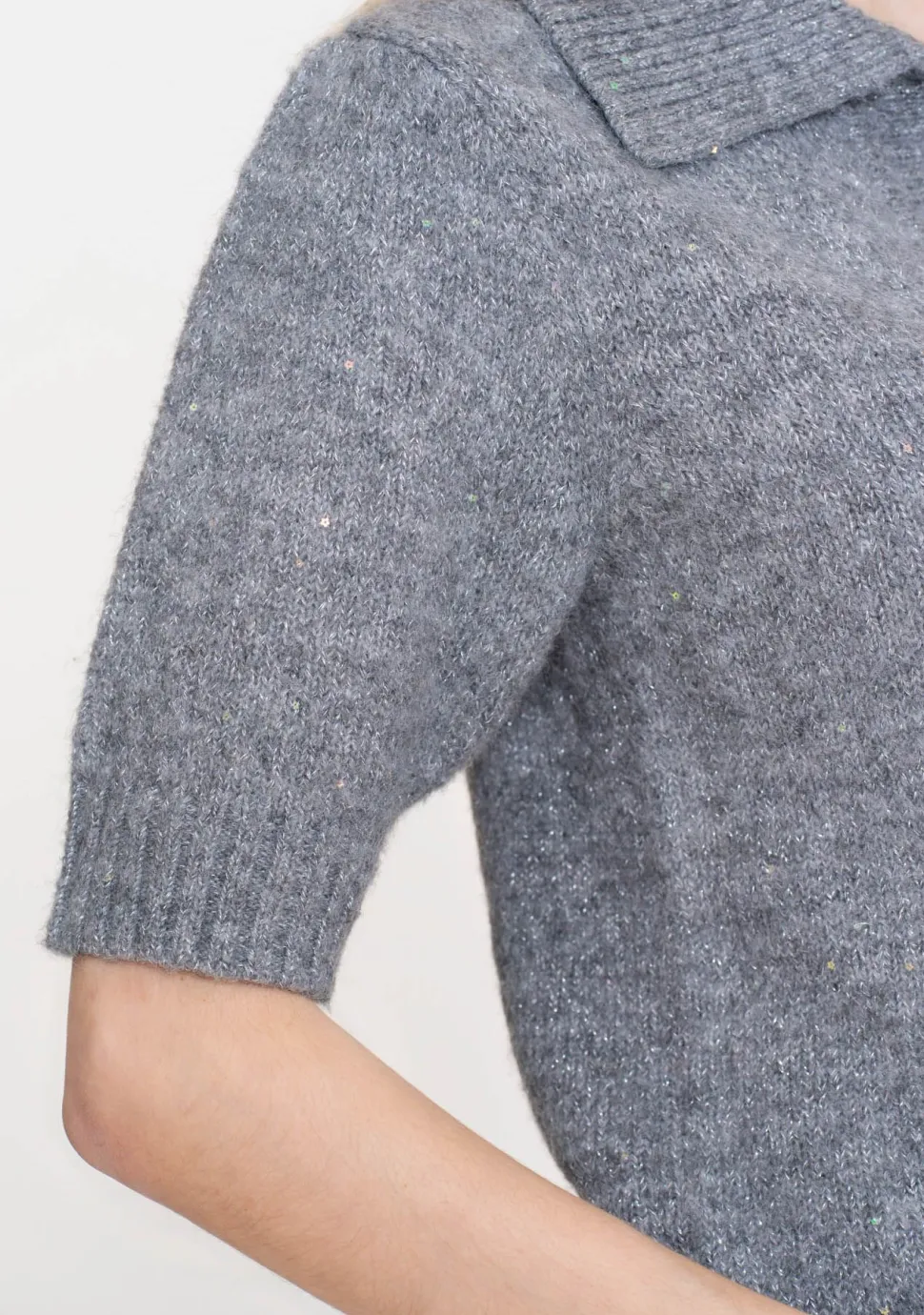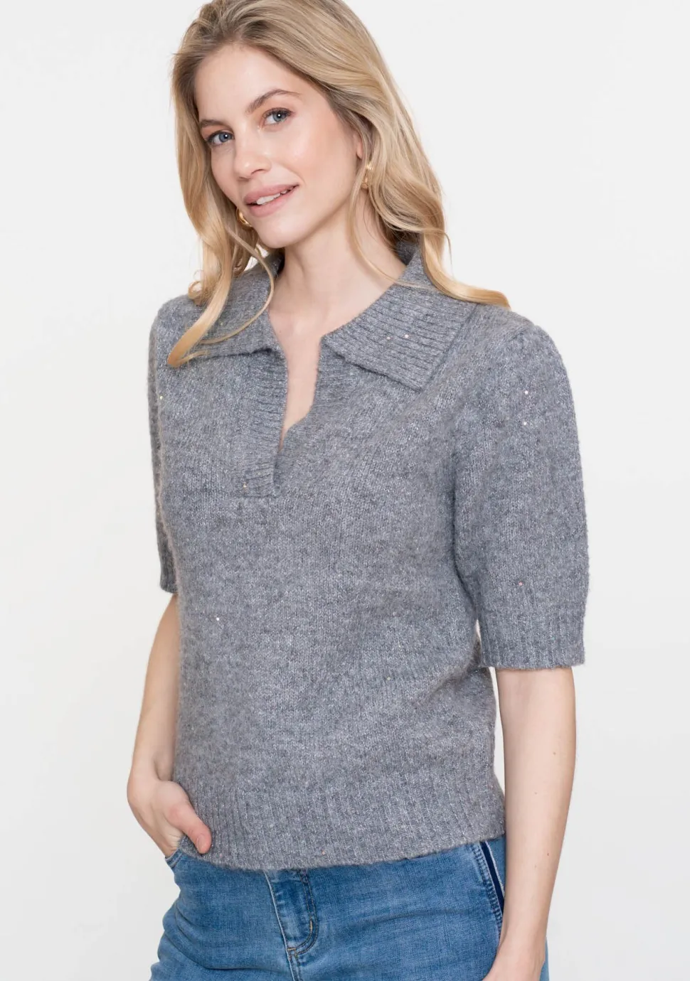 – Het model is 1.76m lang en draagt maat S