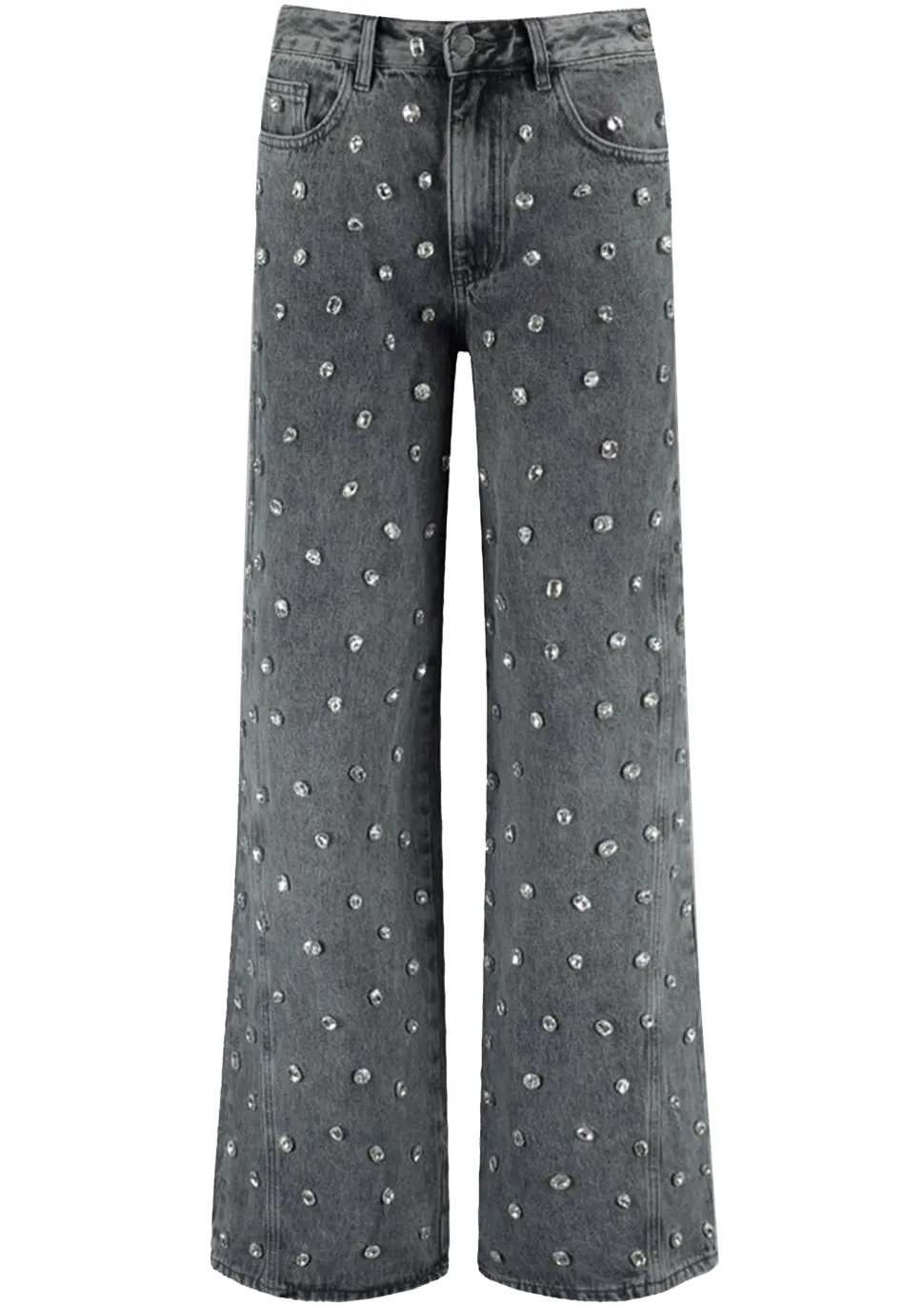 – MAYRA-PA jeans voorzien van five pockets en riemlussen. De jeans is afgewerkt met grote strass steentjes