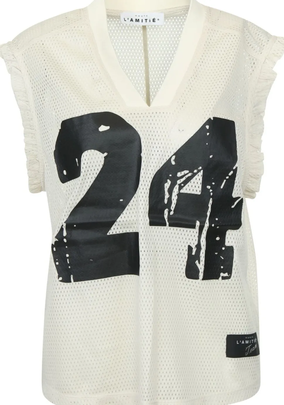 – Football shirt afgewerkt met een ruffle detail bij de schouders