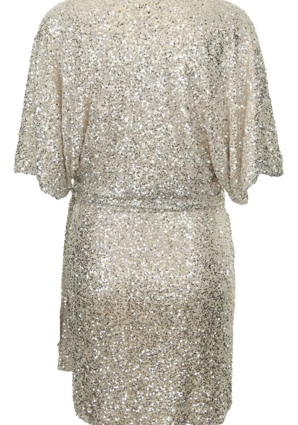 – ELKE wikkel jurk afgewerkt met een all-over pailletten detail