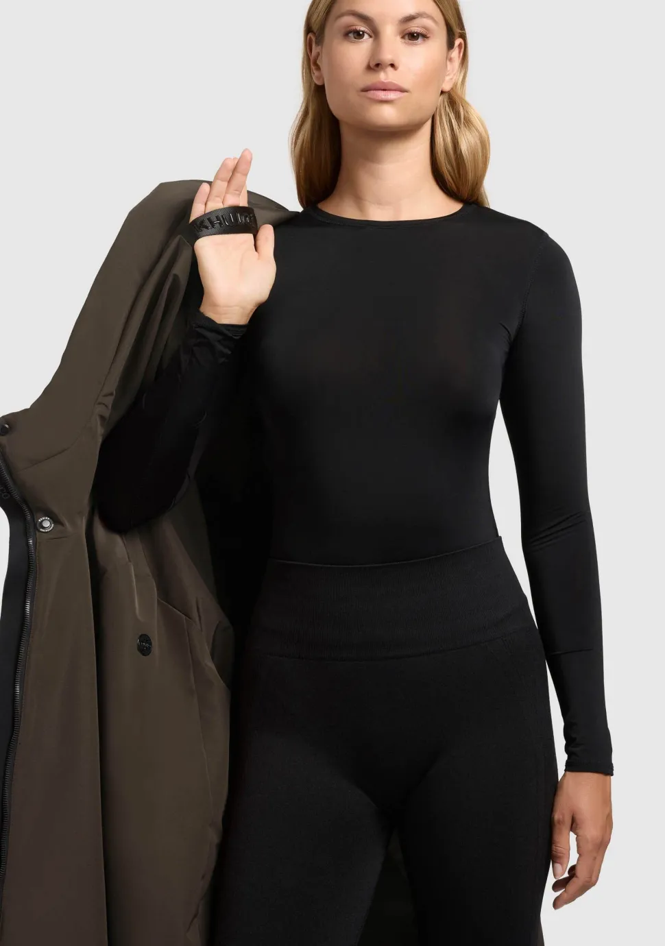 – Het model is 1.72m lang en draagt maat S