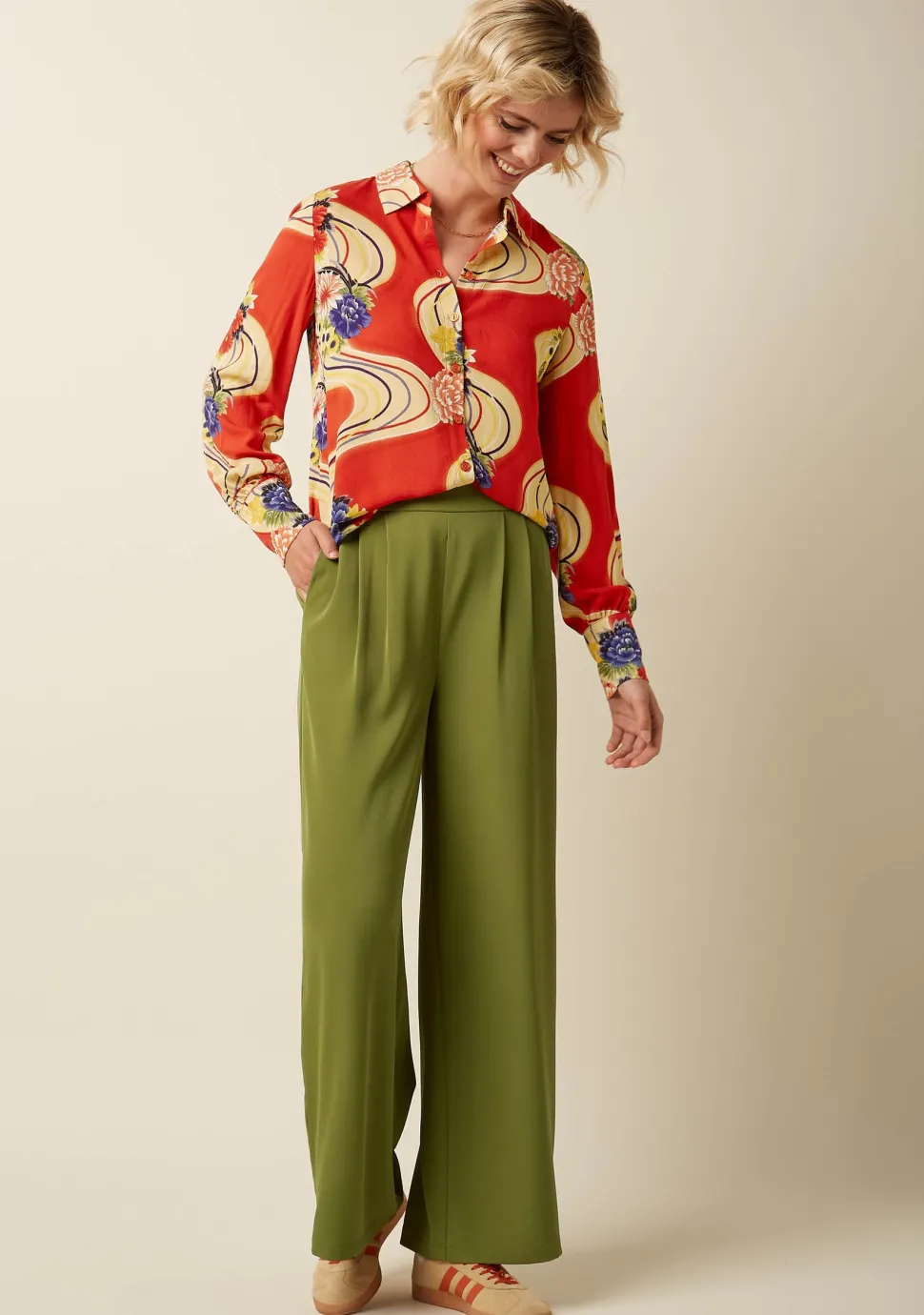 – Het model is 1.76m lang en draagt maat 36