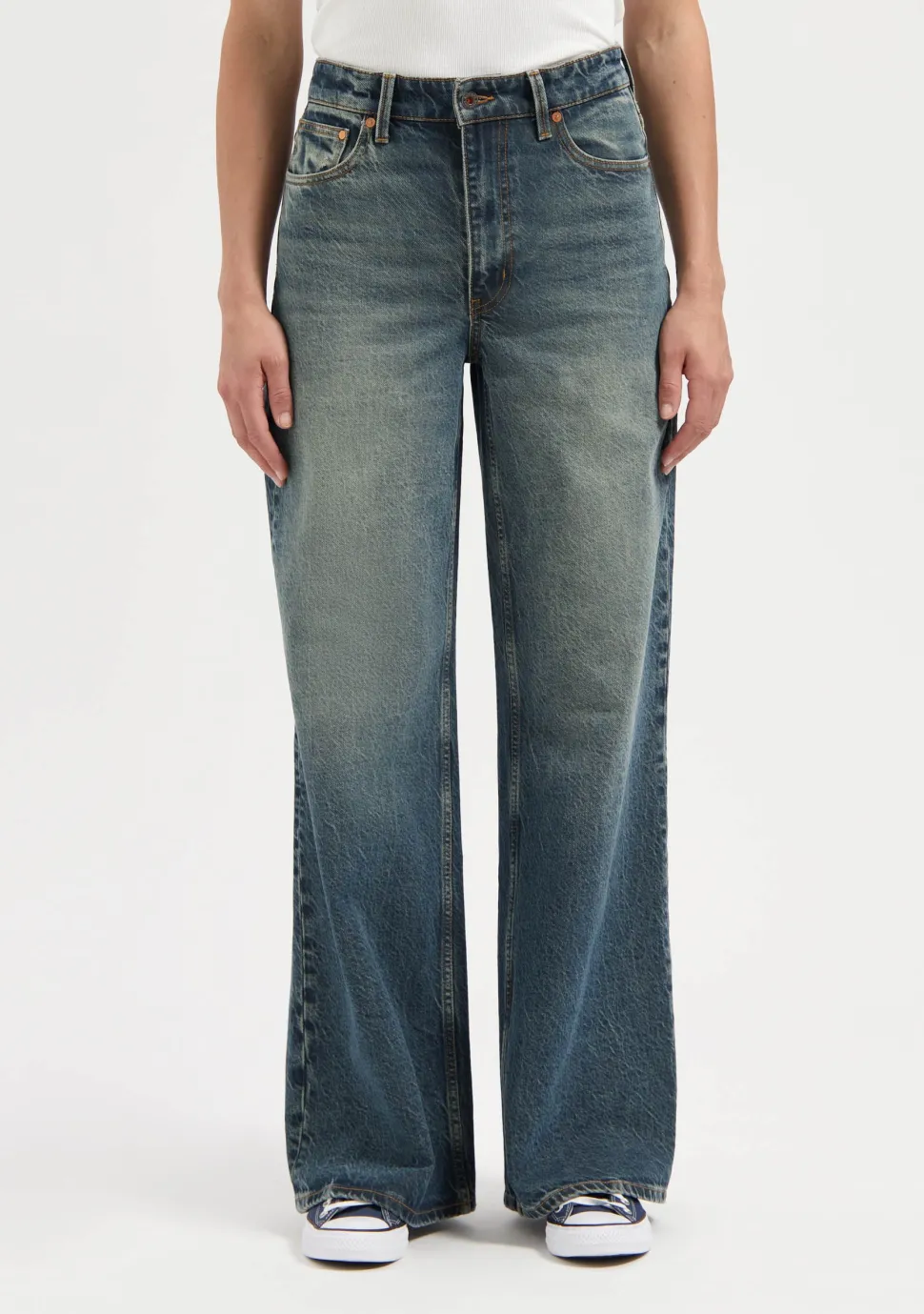 – Harper loose flare retro blue voorzien van five pockets en riemlussen