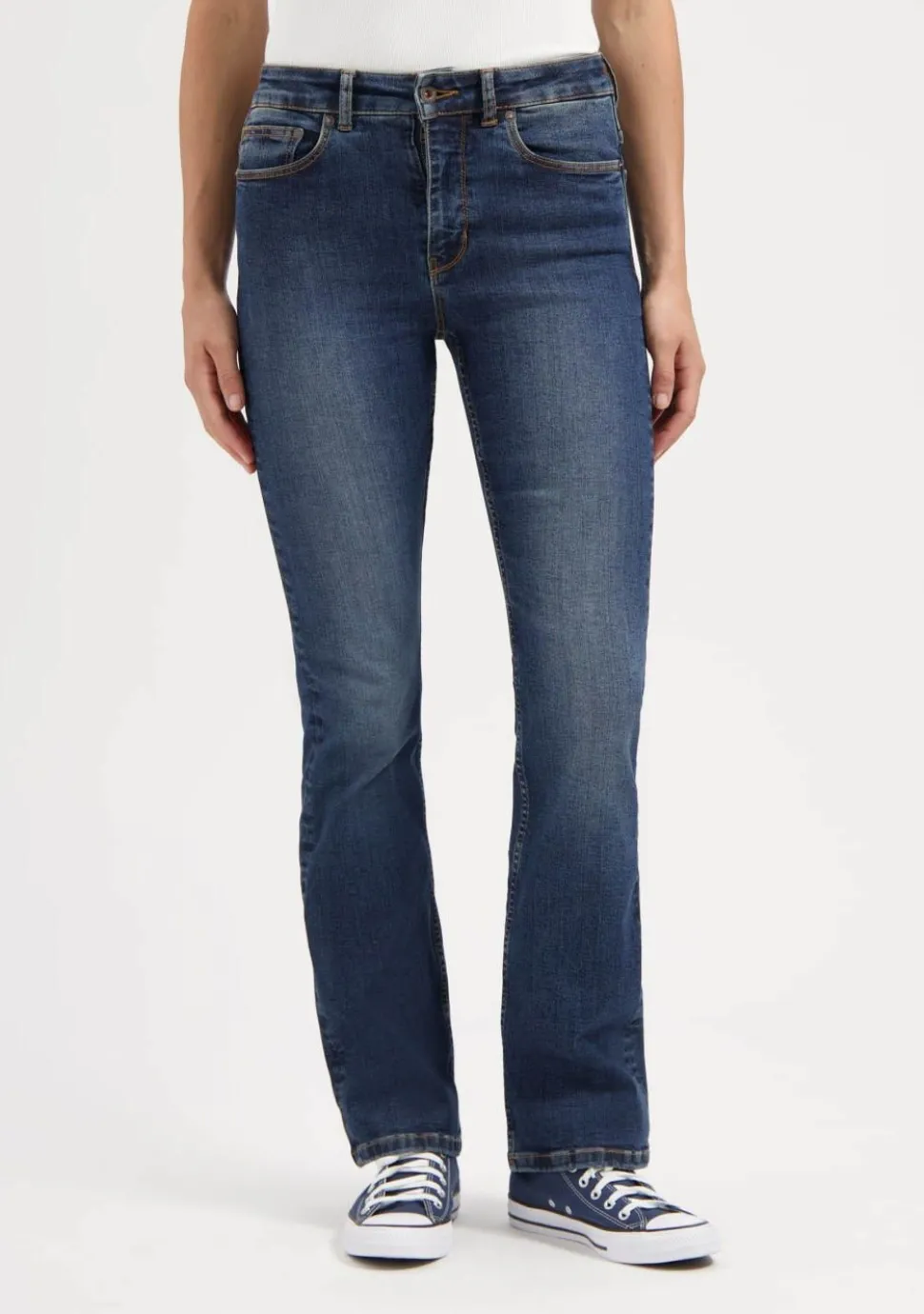 – Zoe bootcut meadow blue jeans voorzien van five pockets en riemlussen