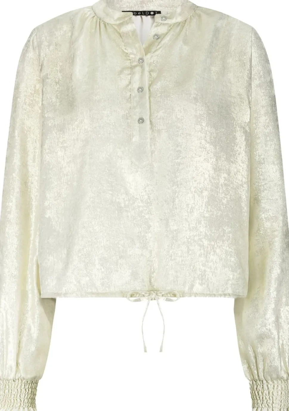 – De Alies blouse is afgewerkt met een glimmende coating. De blouse is afgewerkt met smock details bij de mouwen.