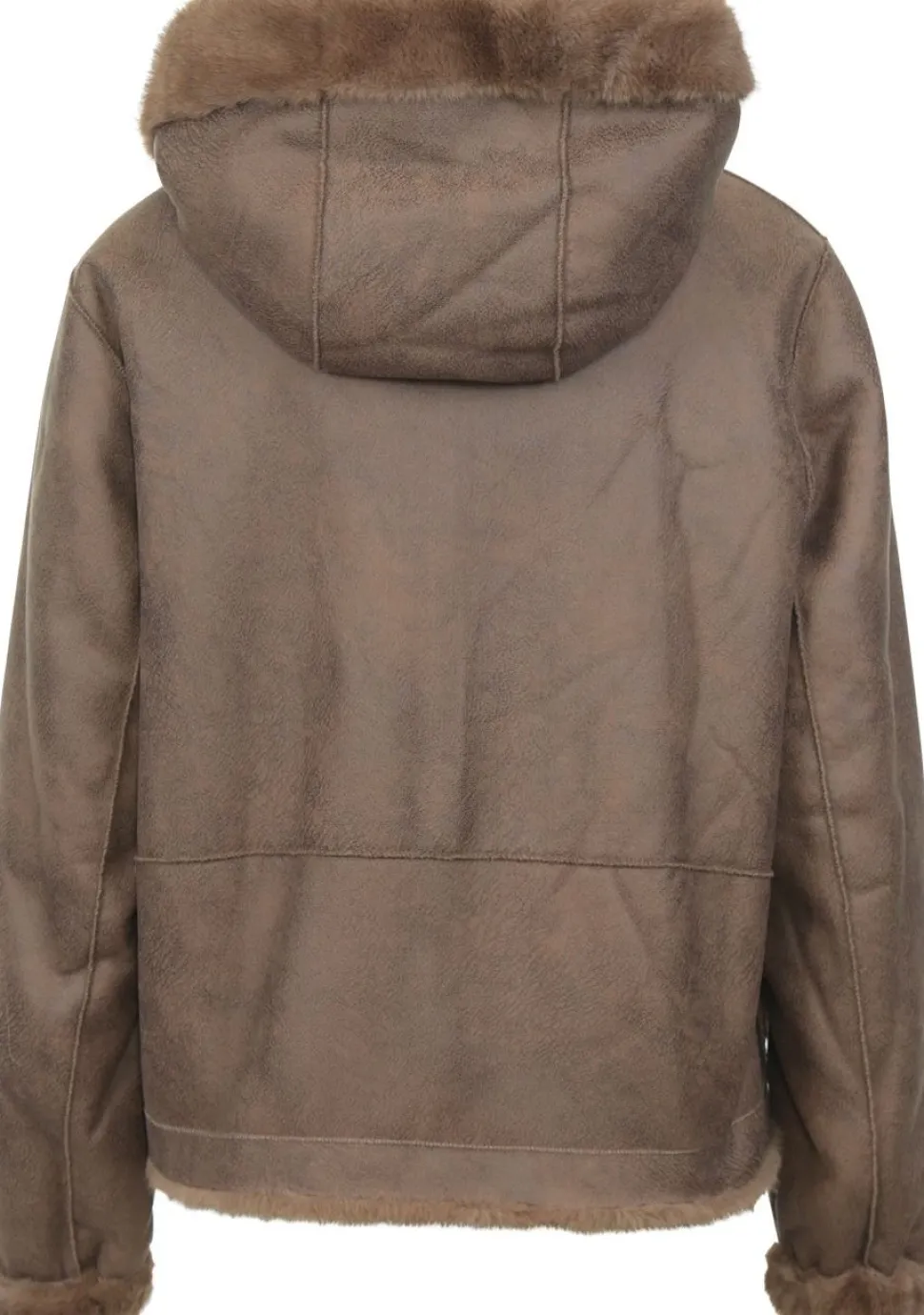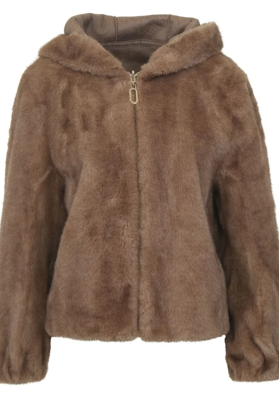 – Fake fur jasje voorzien van steekzakken en capuchon