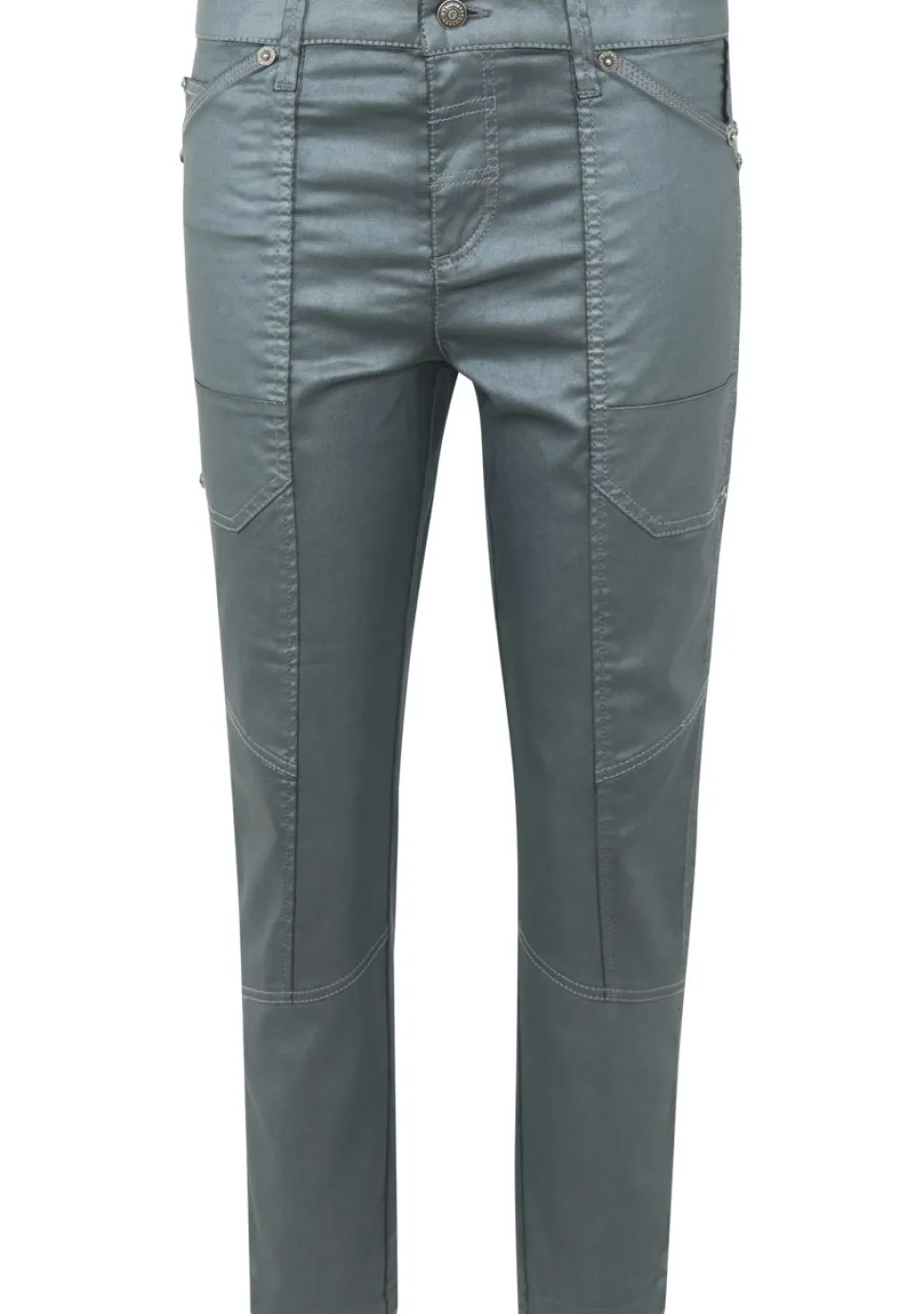 – Pantalon afgewerkt met een metallic coating. De broek is afgewerkt met steekzakken