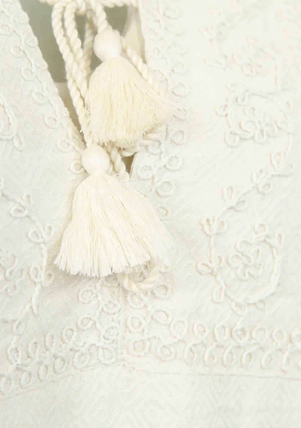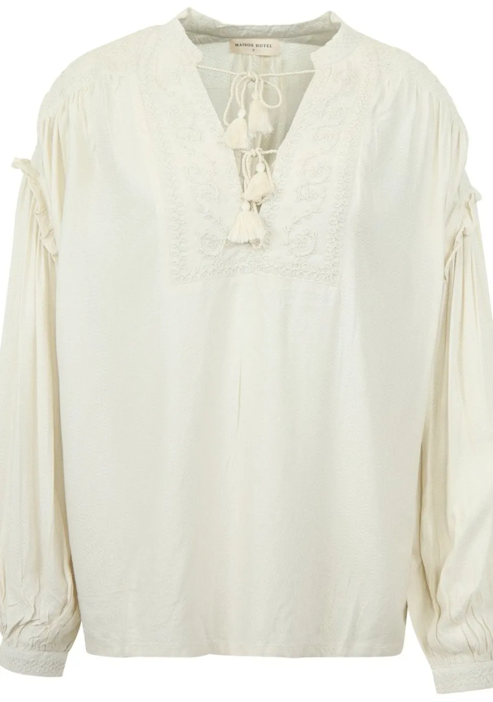 – Blouse afgewerkt met borduursels en een strik detail aan de voorzijde. De mouwen zijn afgewerkt met een ballon accent