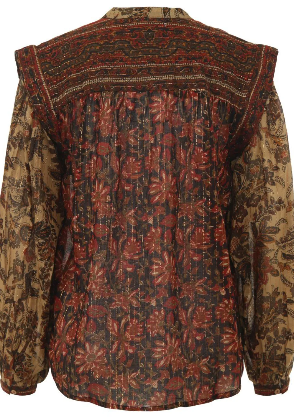 – Blouse afgewerkt met ballon mouwen en een gestreept glitter detail.