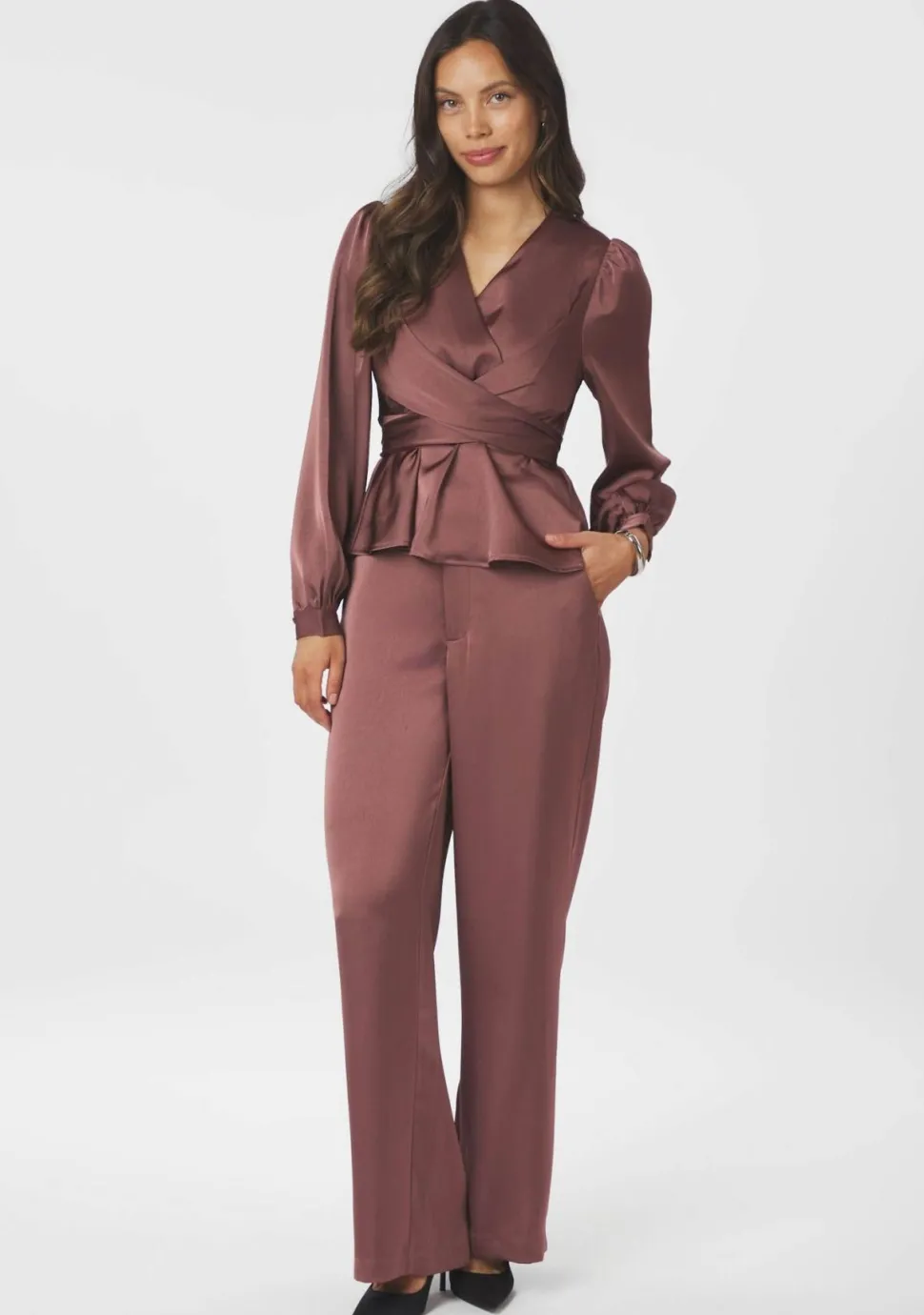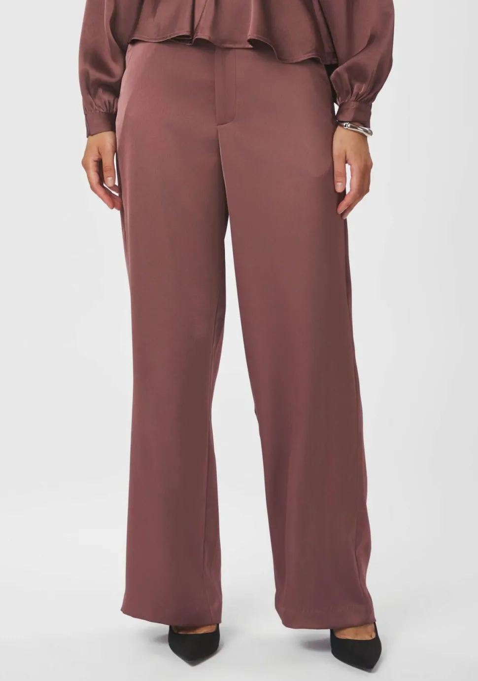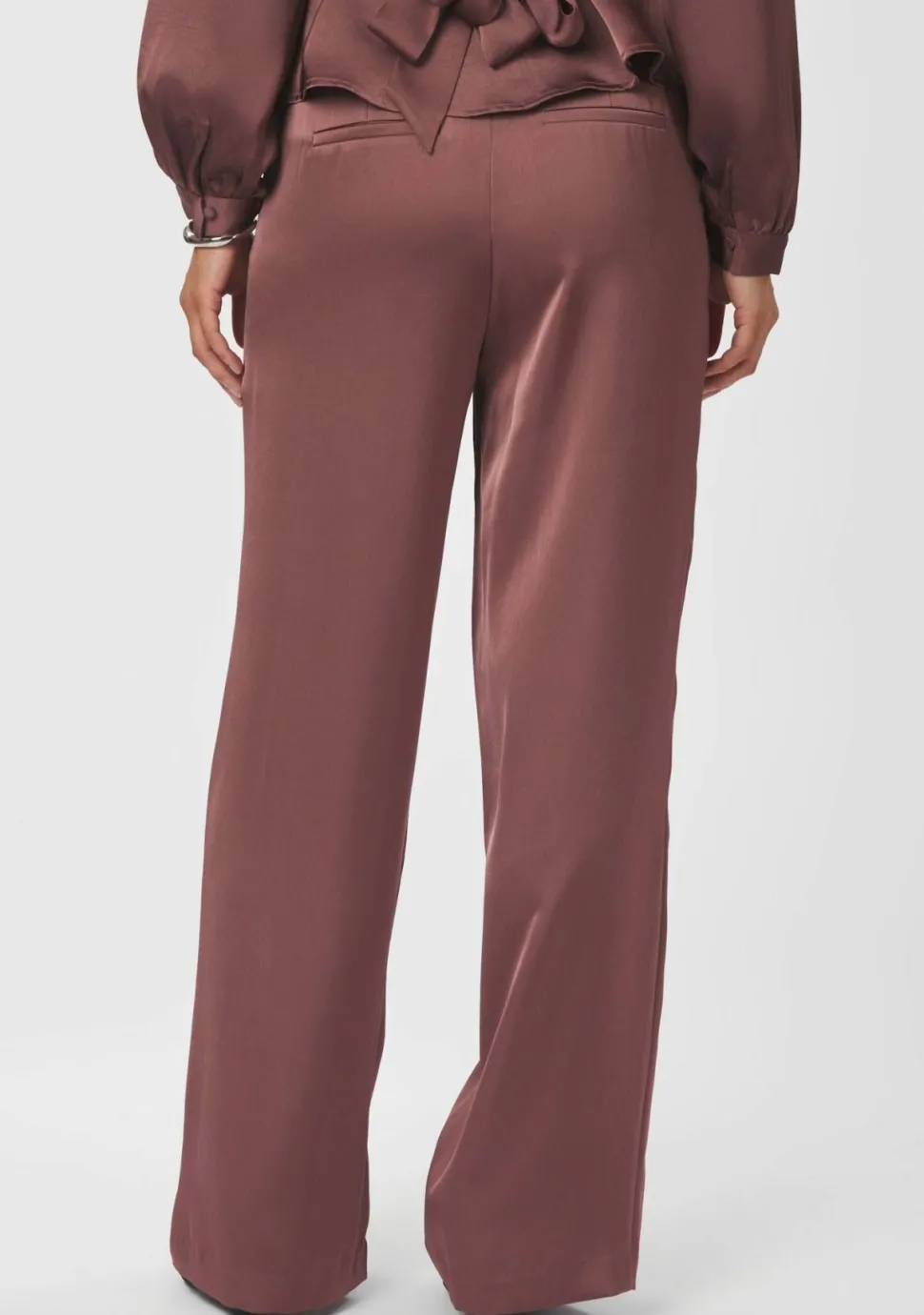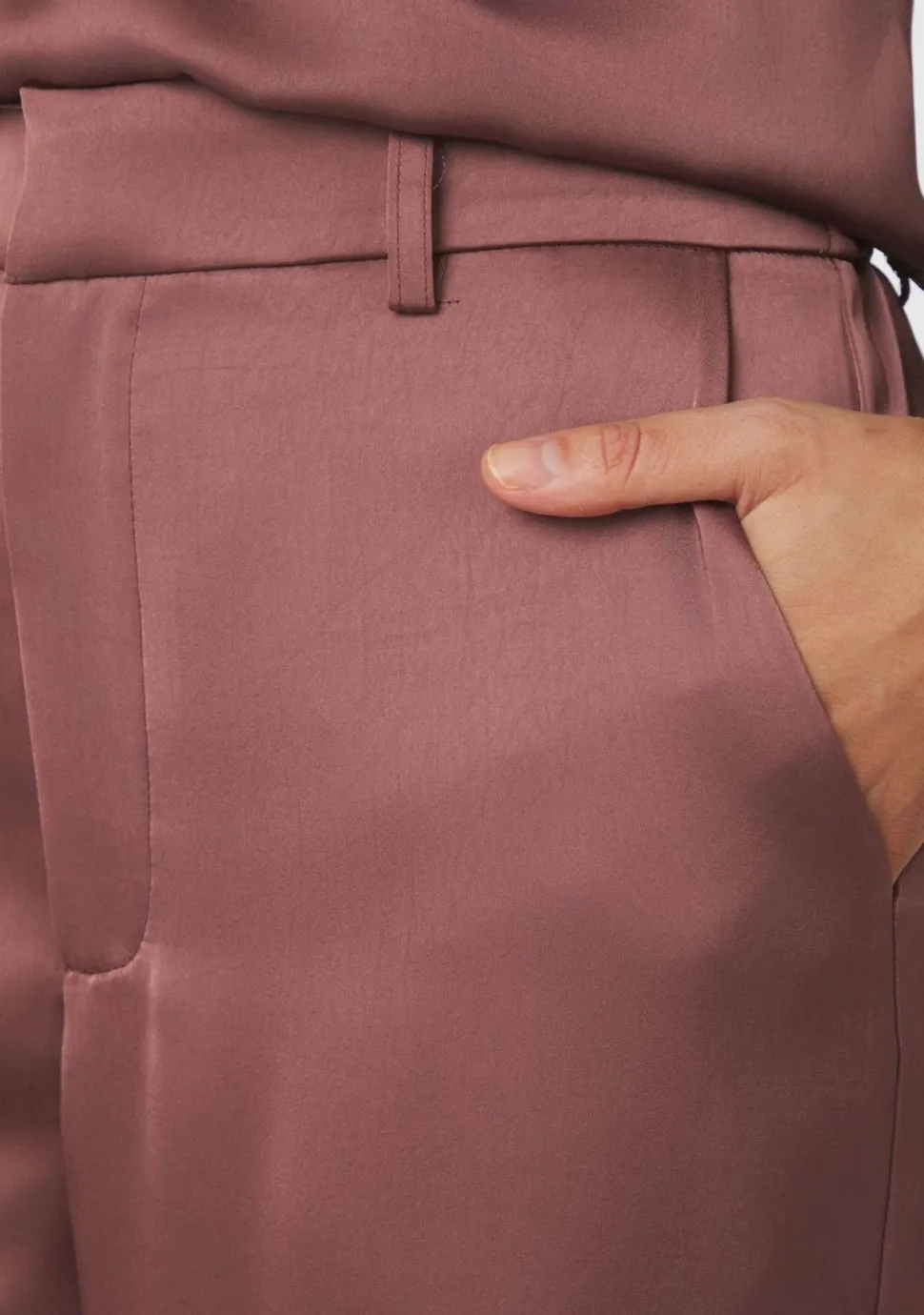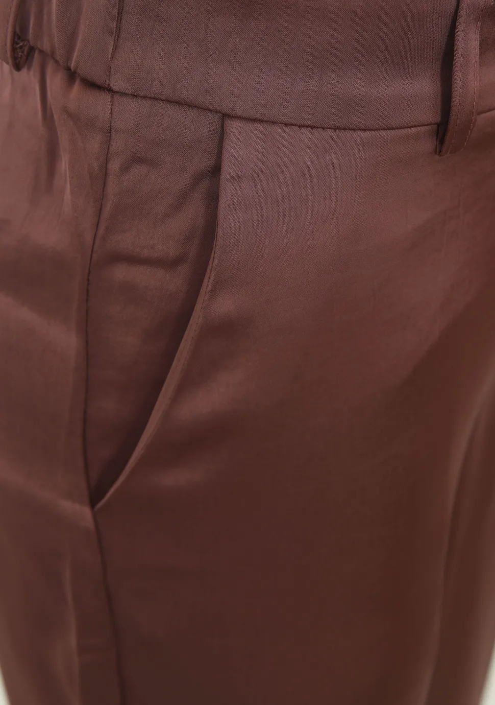 – Satijnen pantalon voorzien van riemlussen en steekzakken