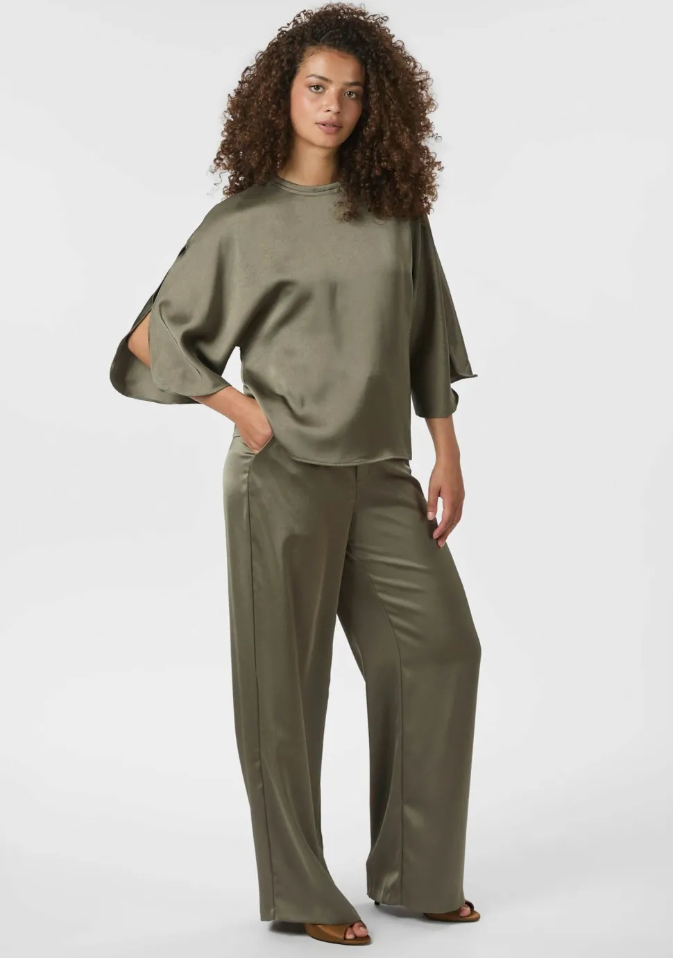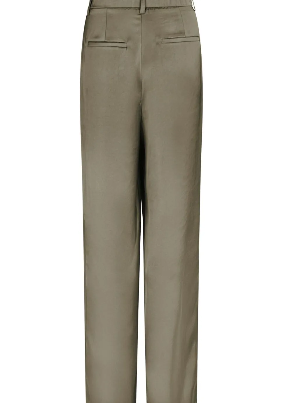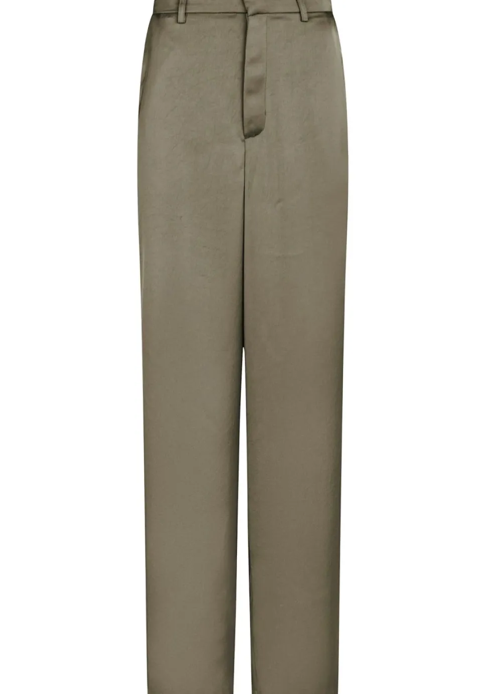 – Satijnen pantalon voorzien van riemlussen en steekzakken